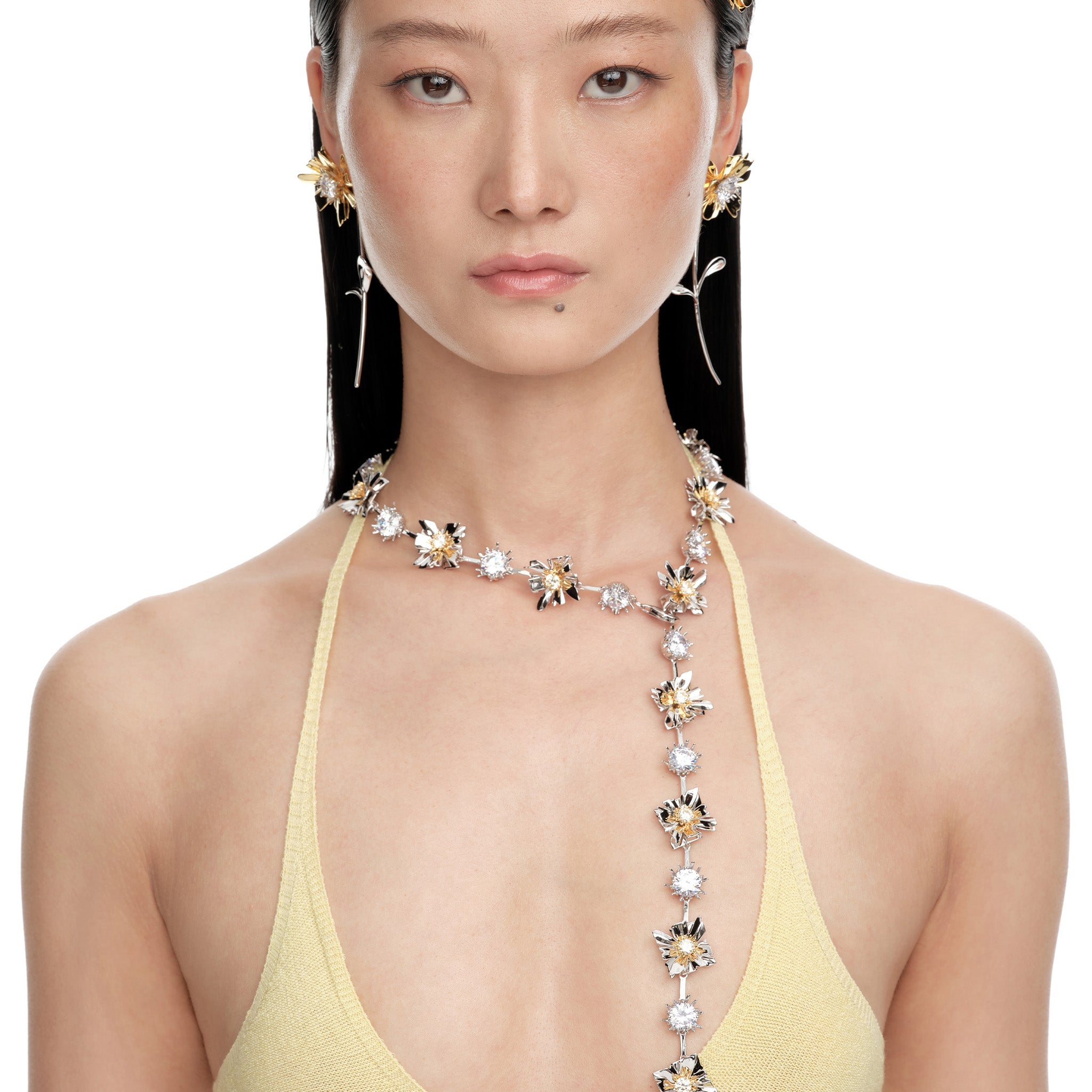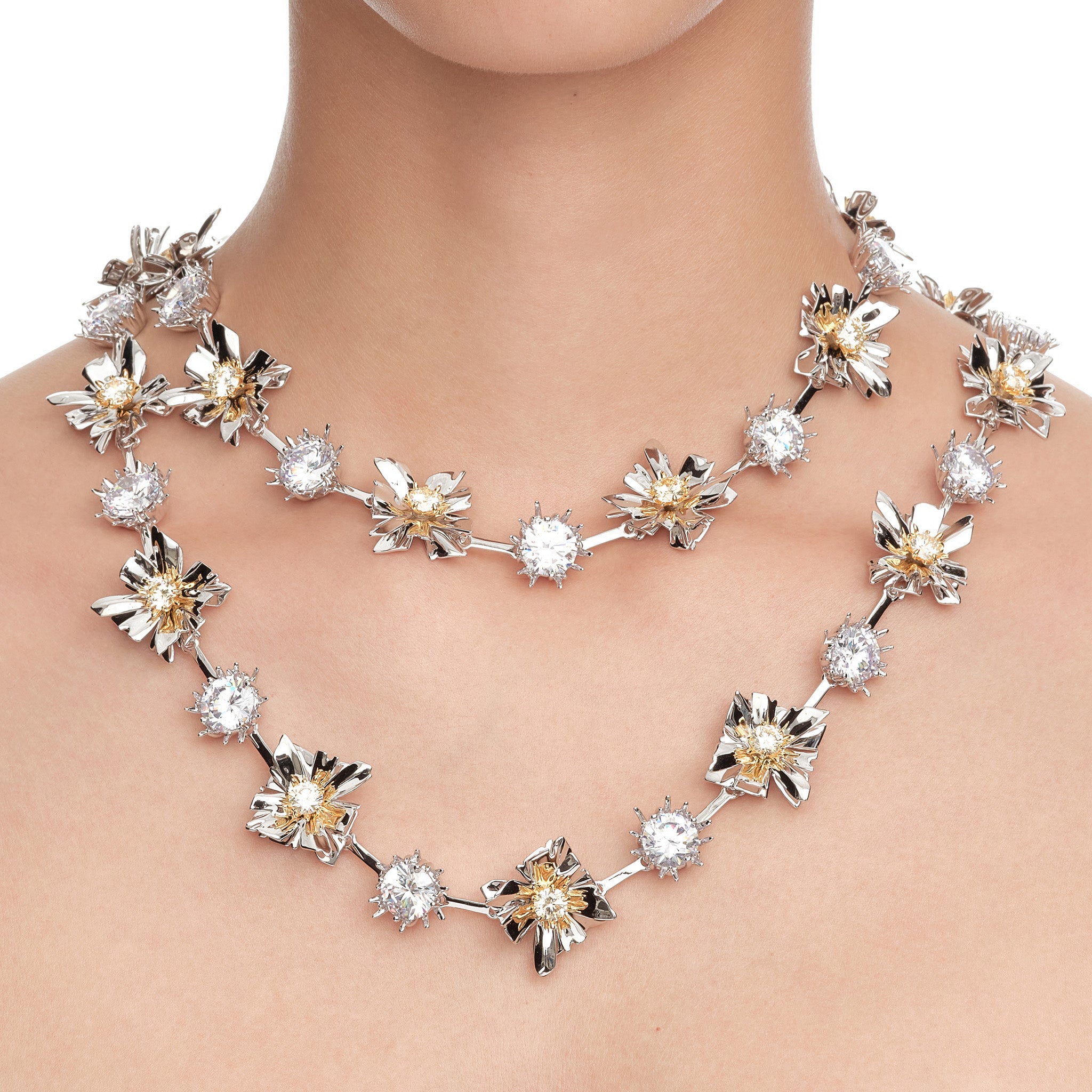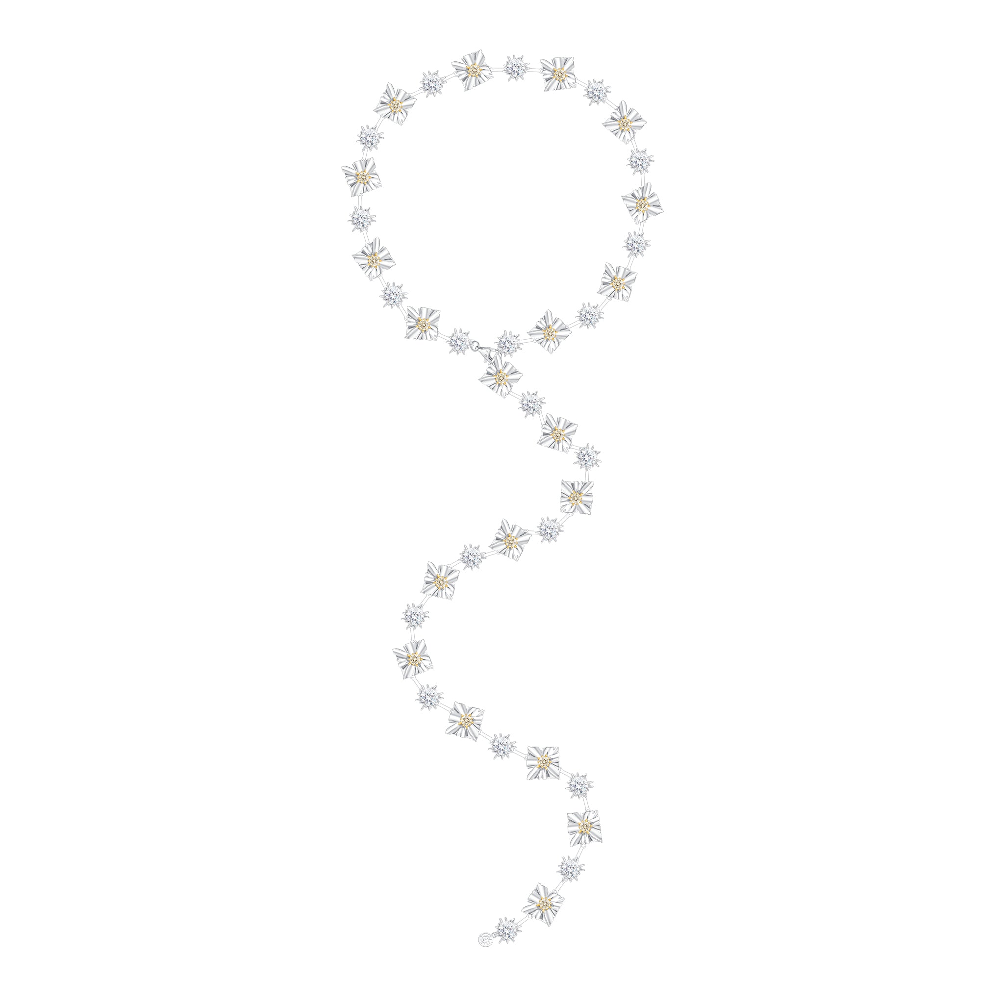 Ripple / Large Square Flower Bud Long Necklace