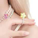 Materials: Brass Plated with 18K gold, Zircon, Synthetic Crystal