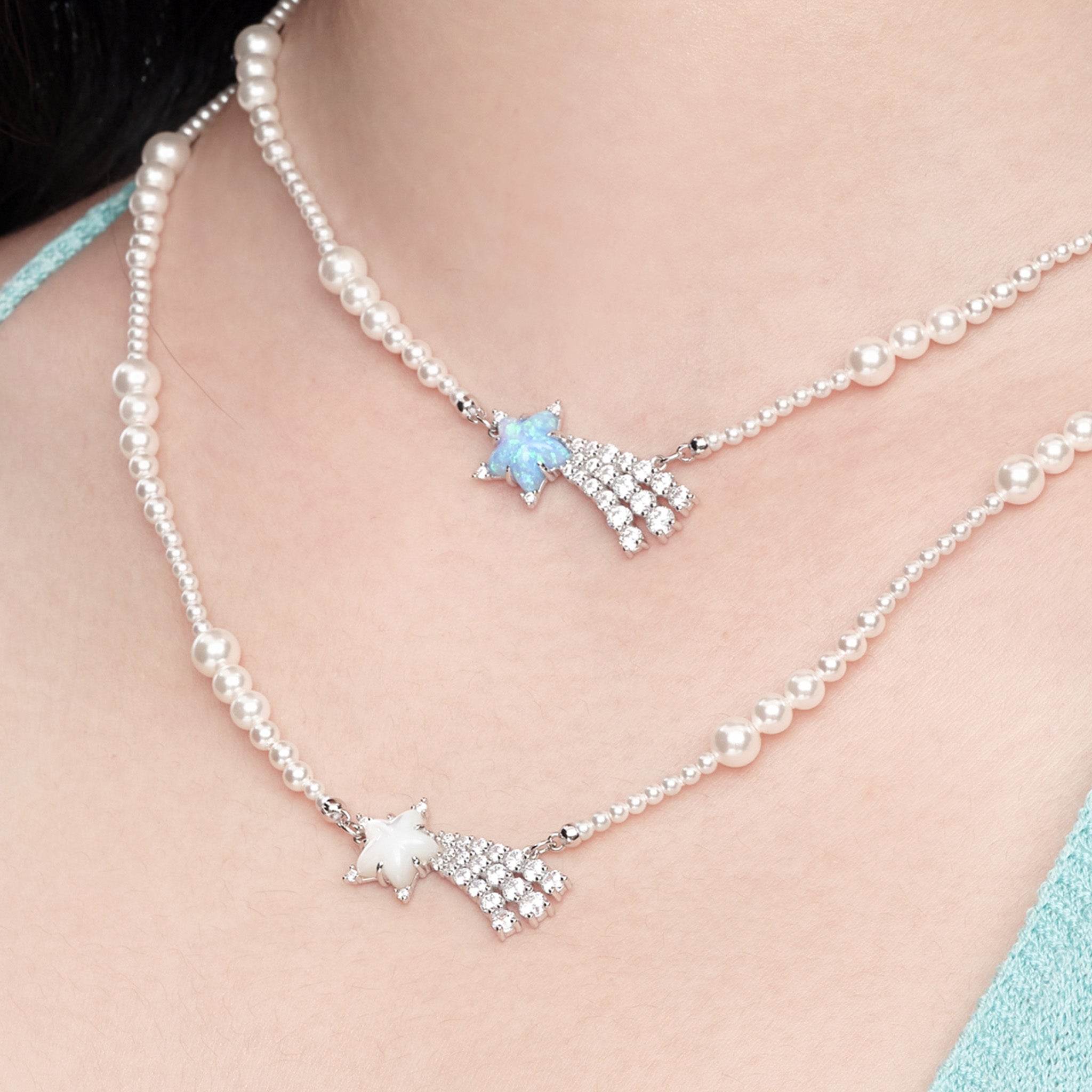 Materials: Silver Plated with 18K gold, Zircon, Nacre, Synthetic Pearl, Synthetic Opal