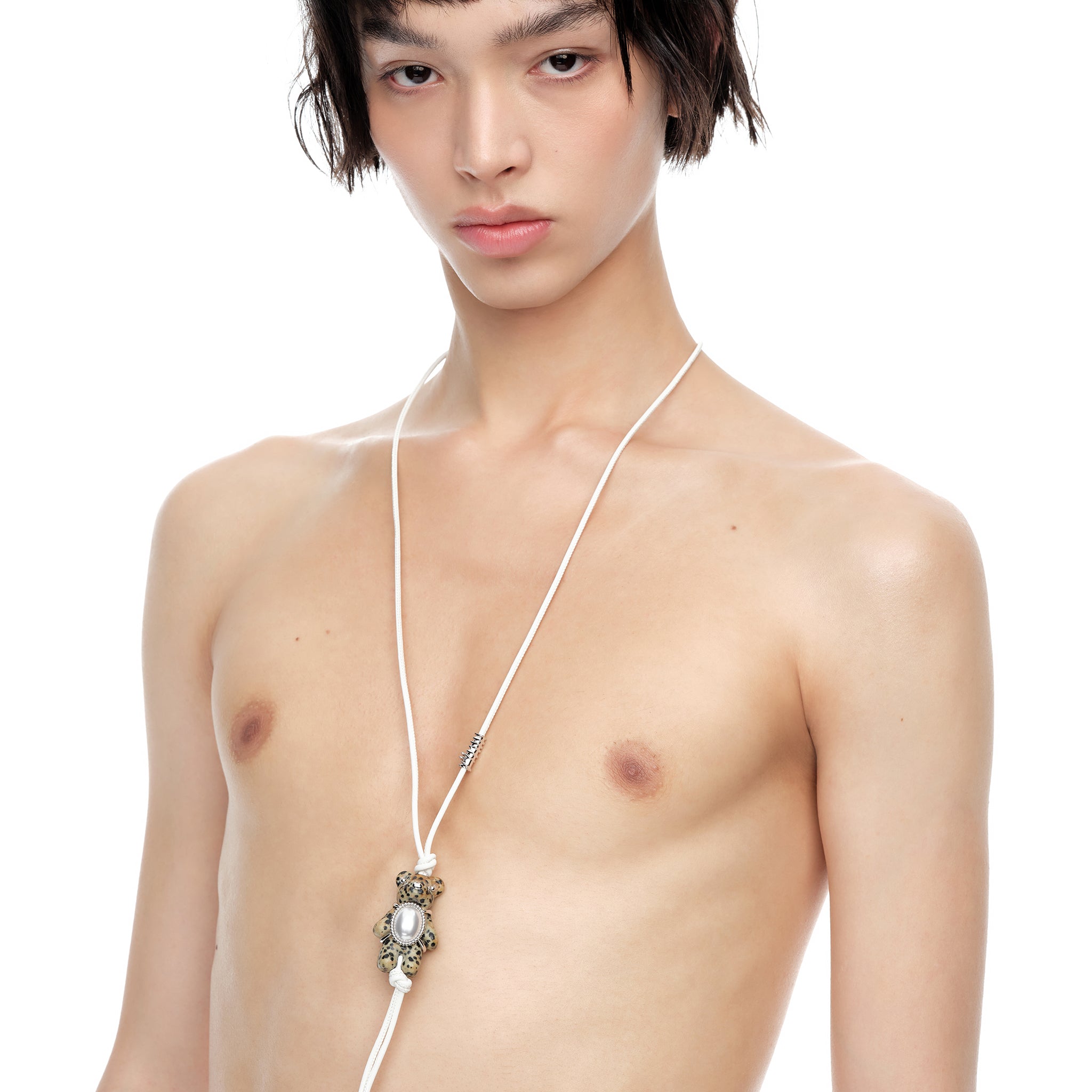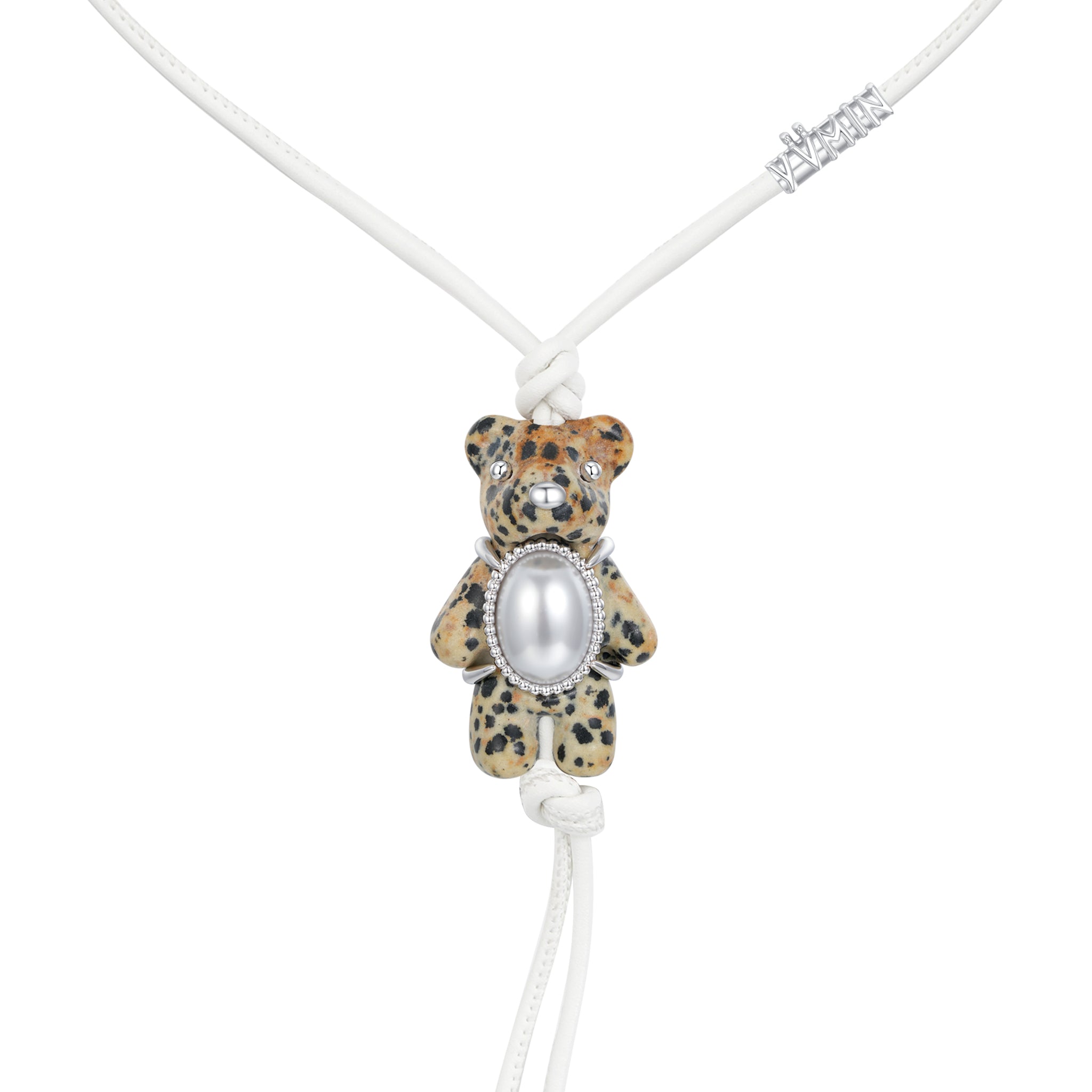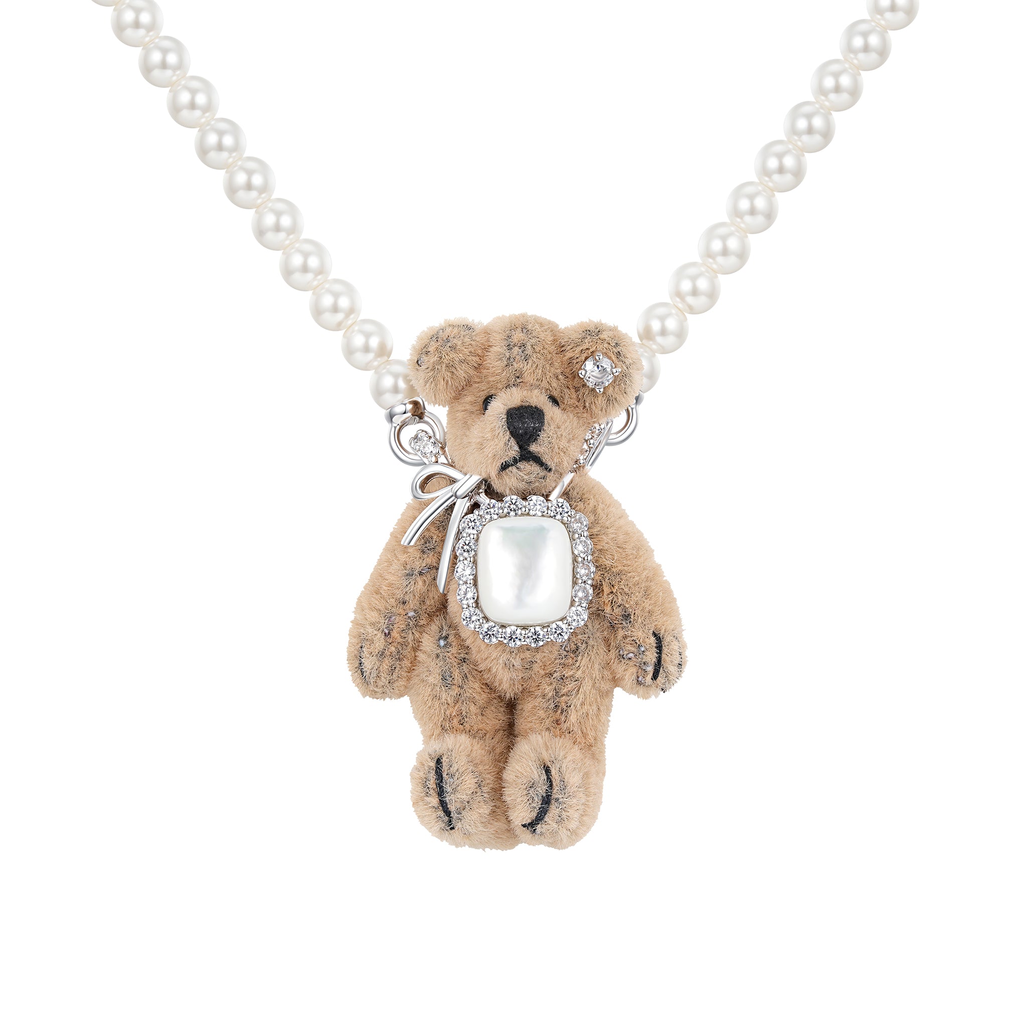 Paradise / Square Stone Plush Bear Pearl Necklace