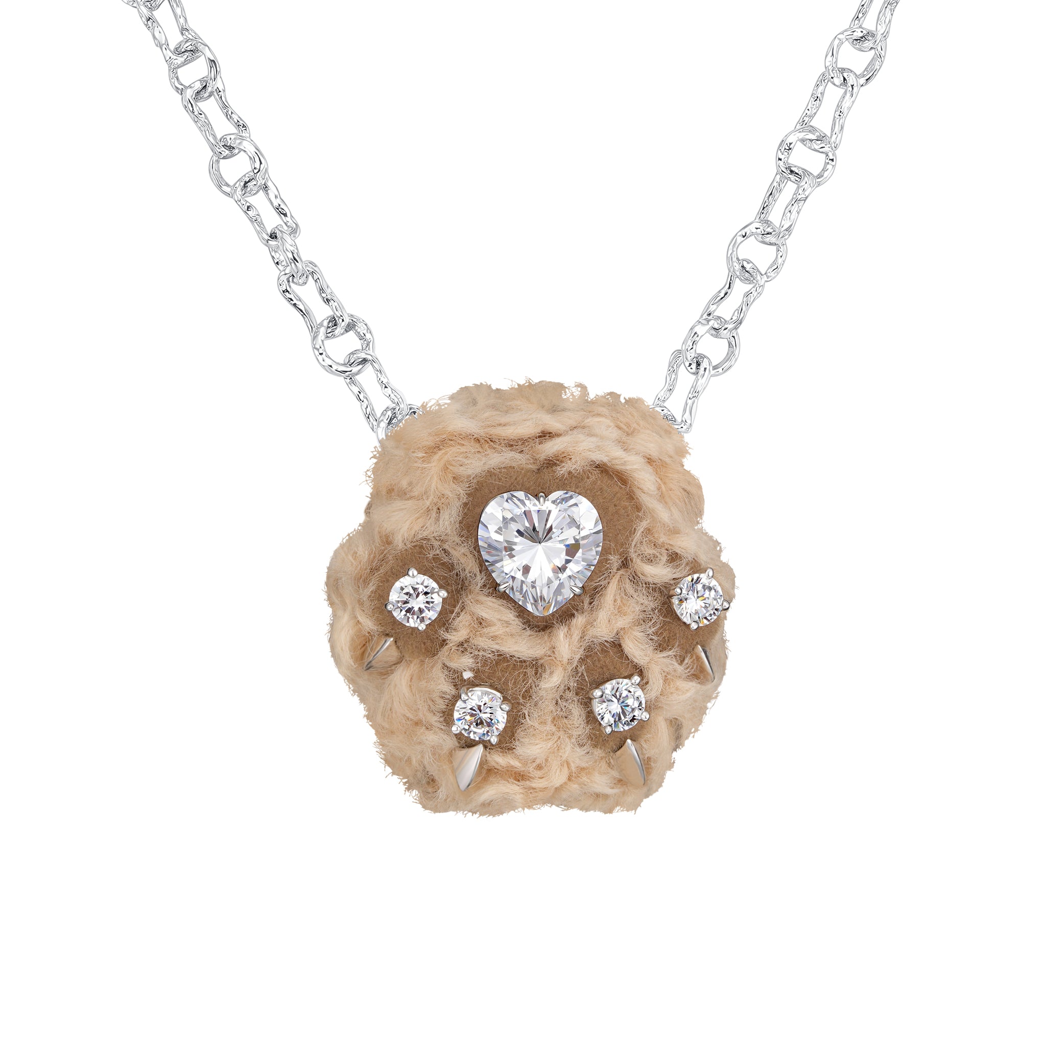 Paradise / Curly Plush Bear Paw Necklace