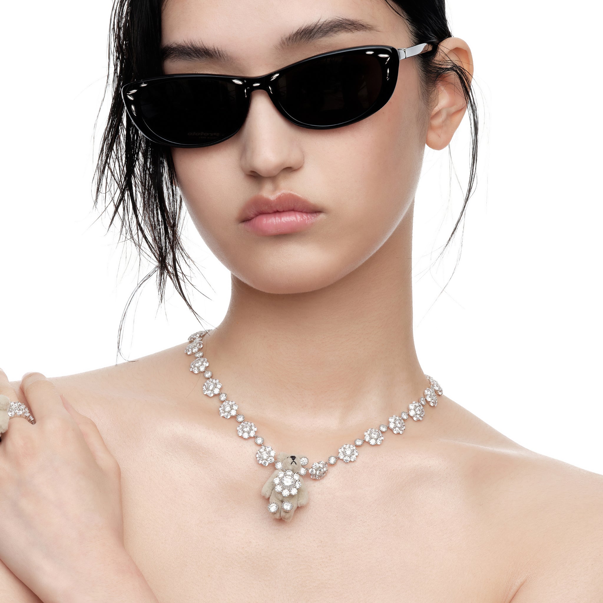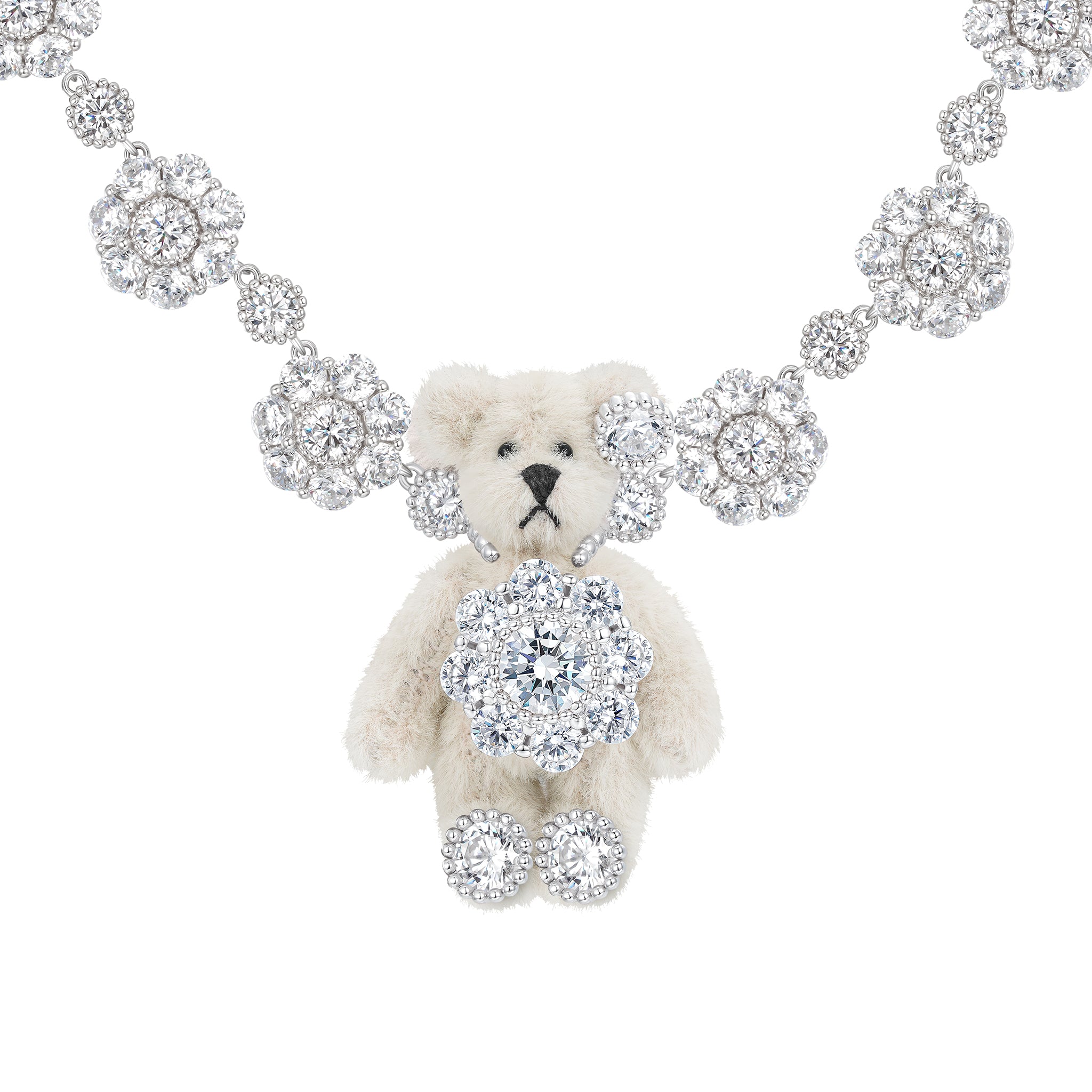 Paradise / Gemstone Flower Plush Bear Pearl Necklace