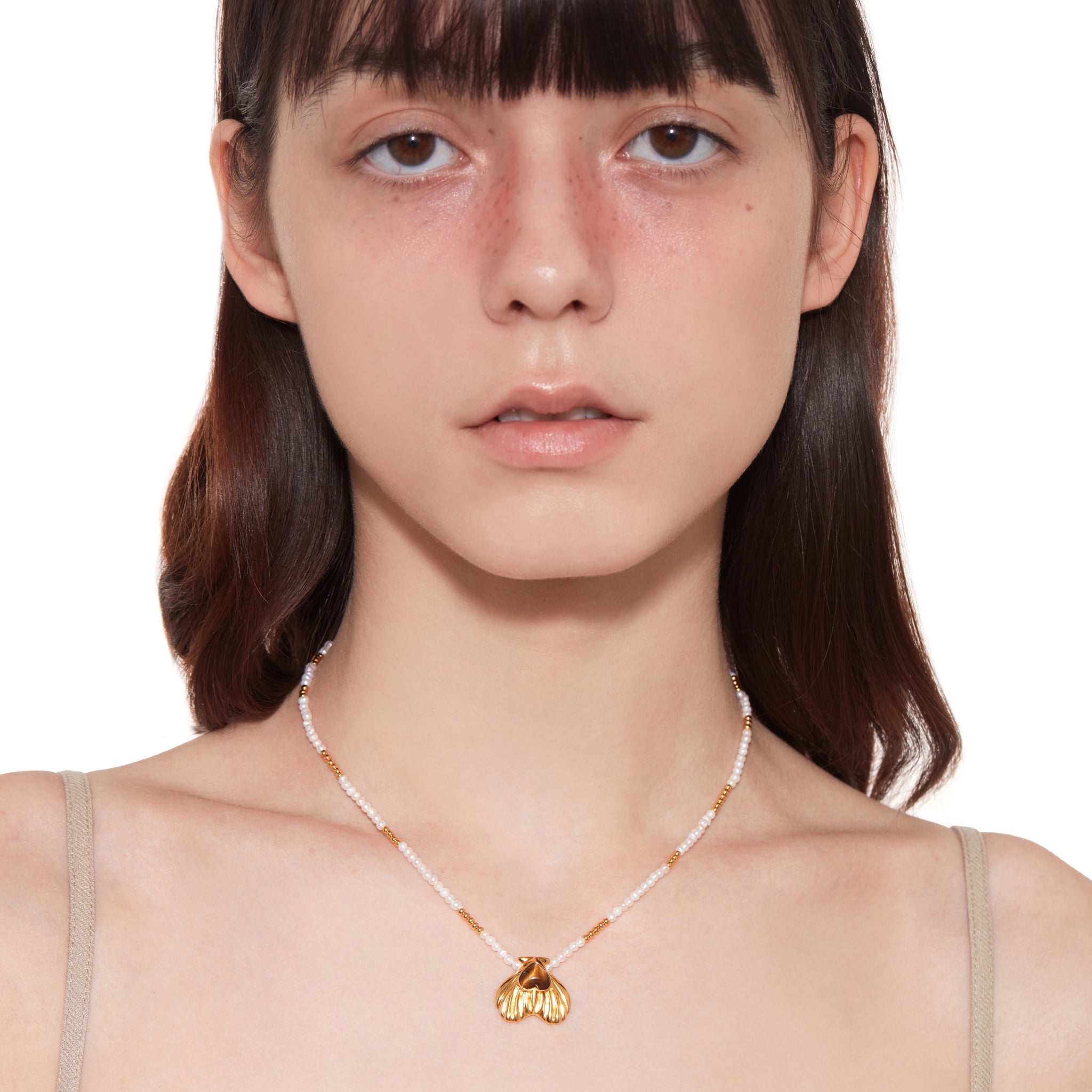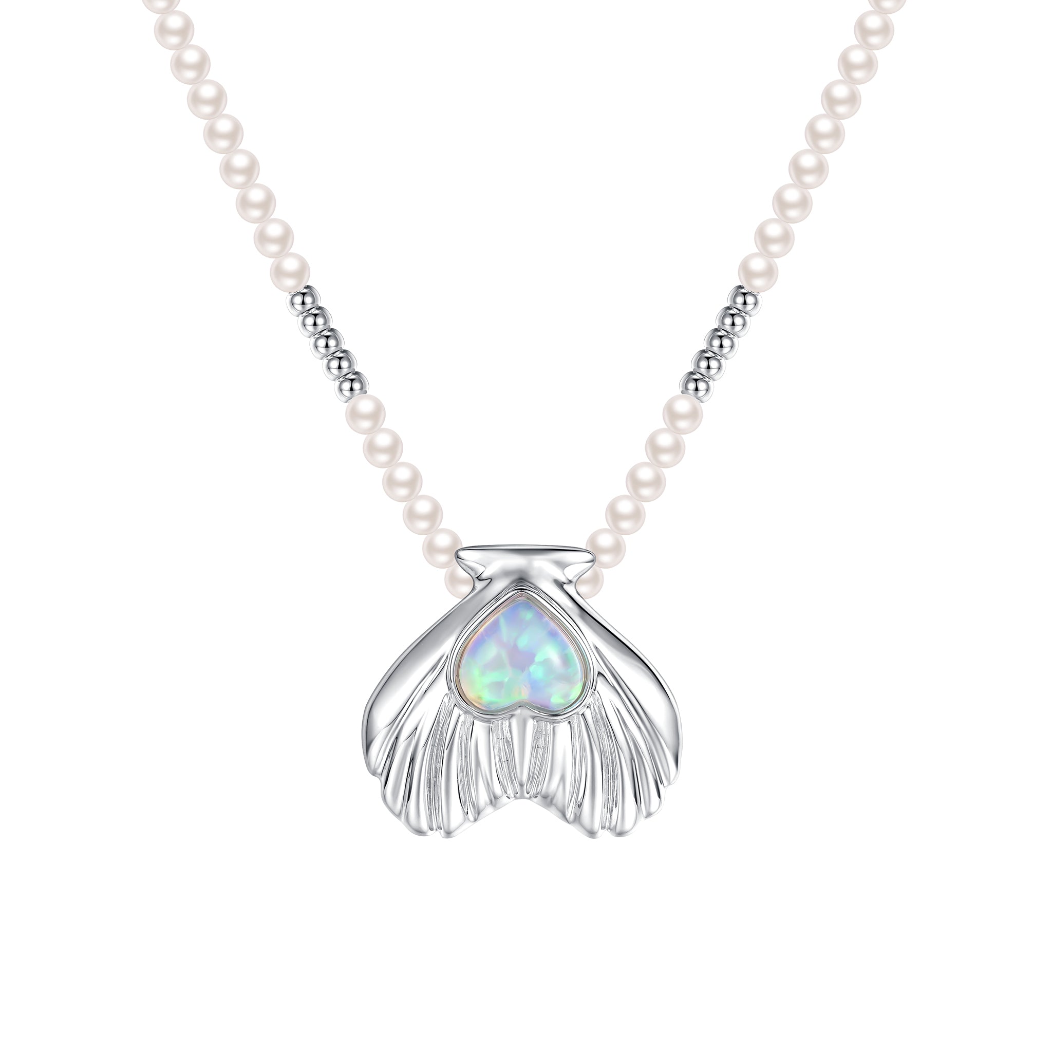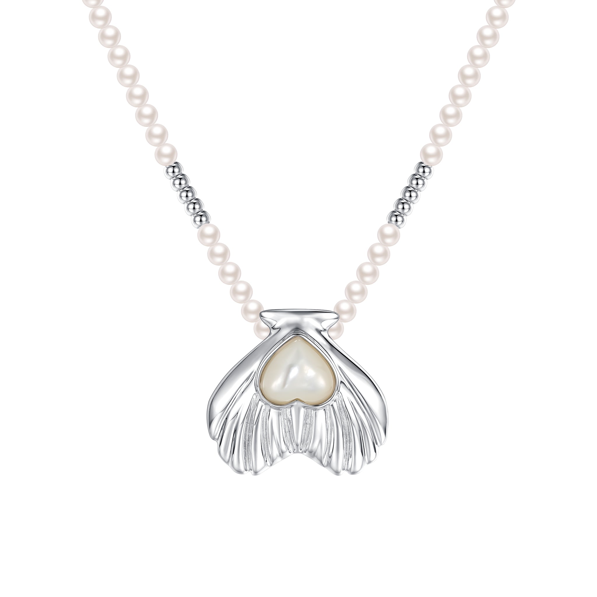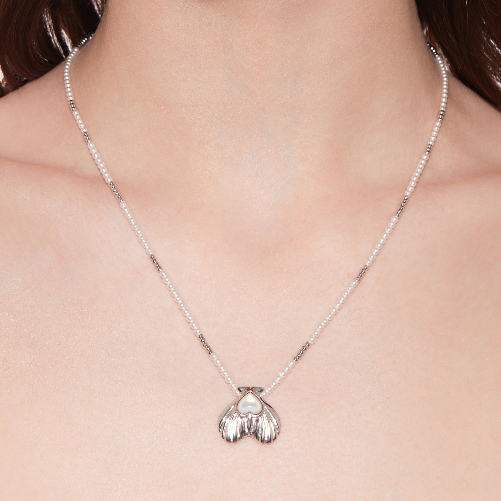 Tasty / Heart Shape Metal Pendant Pearl Necklace