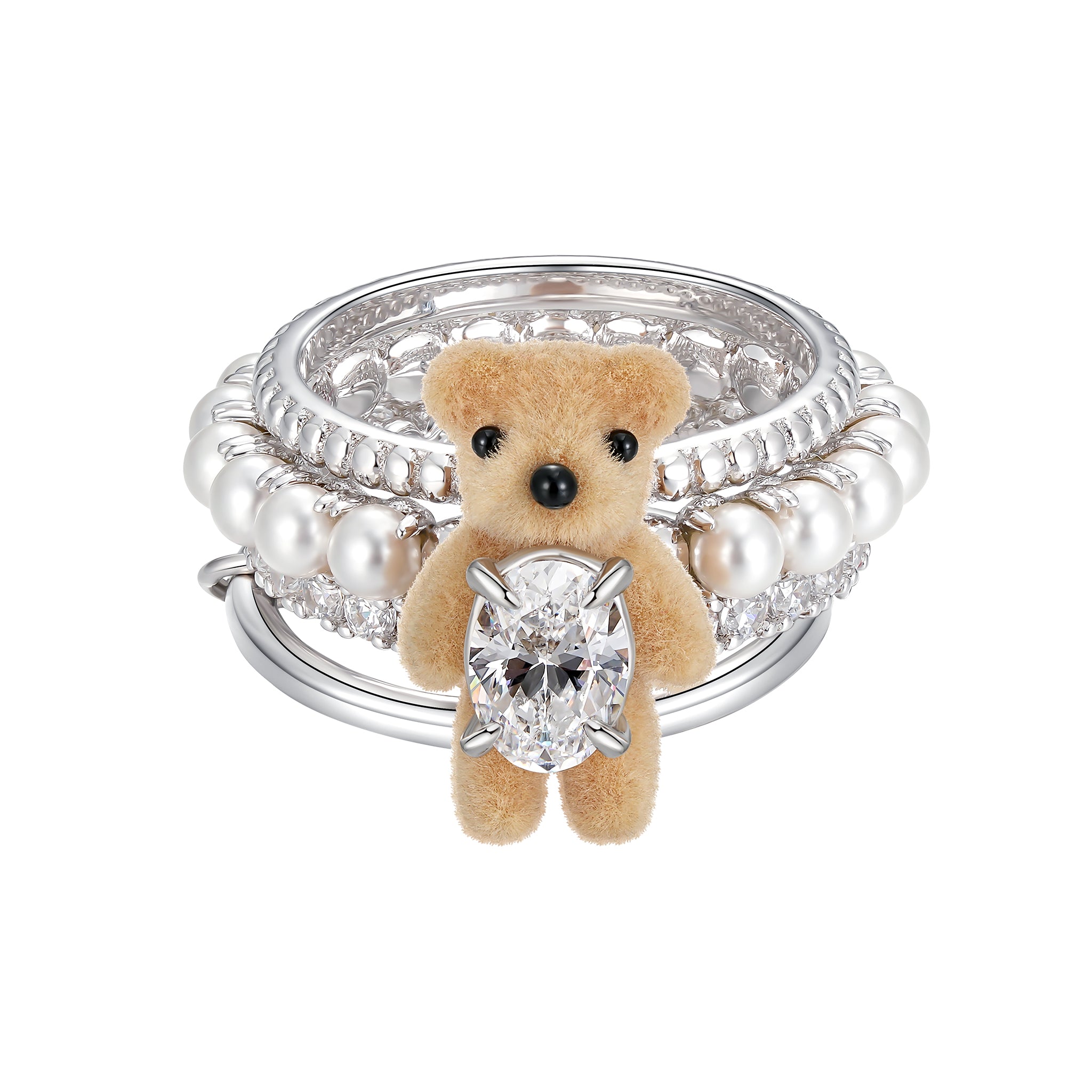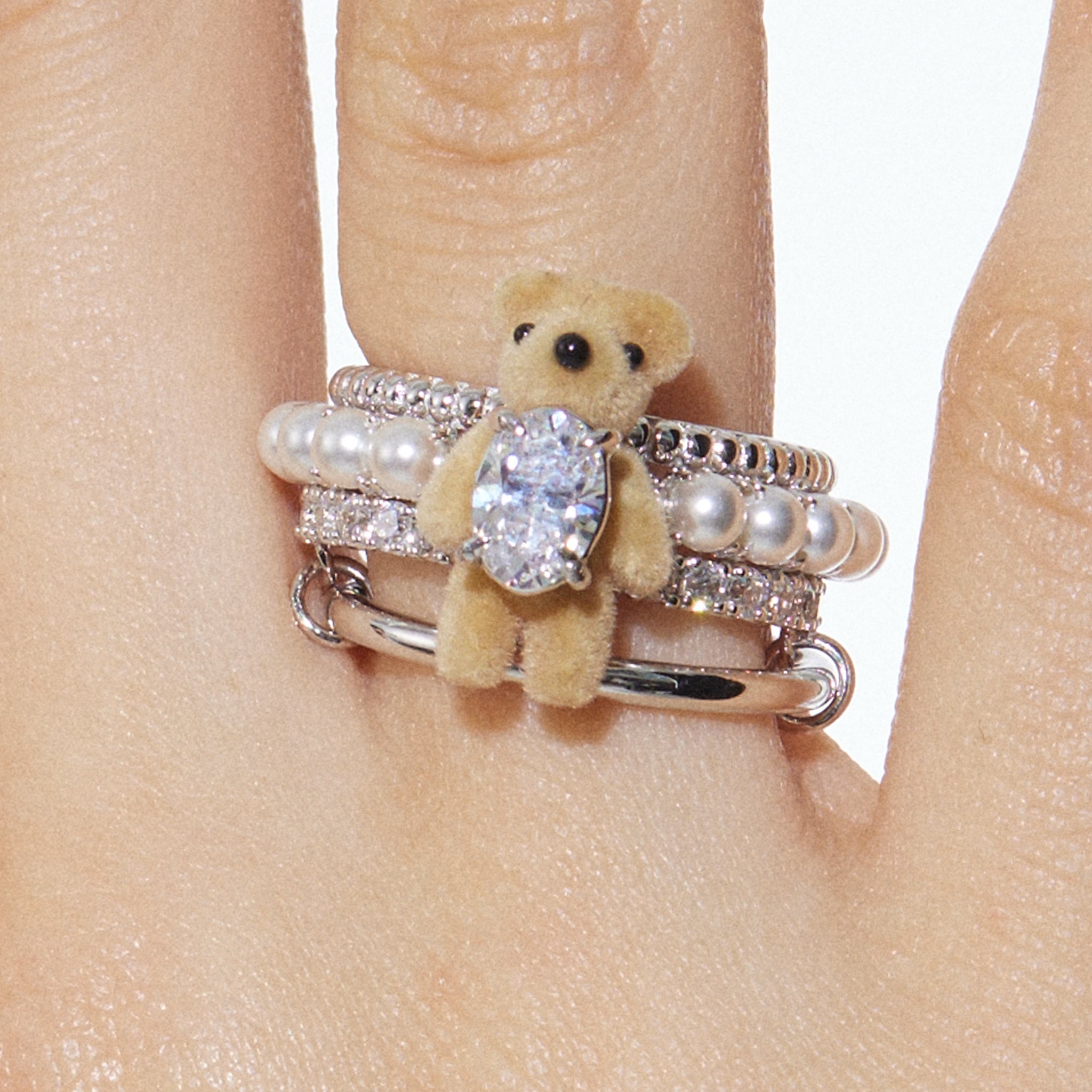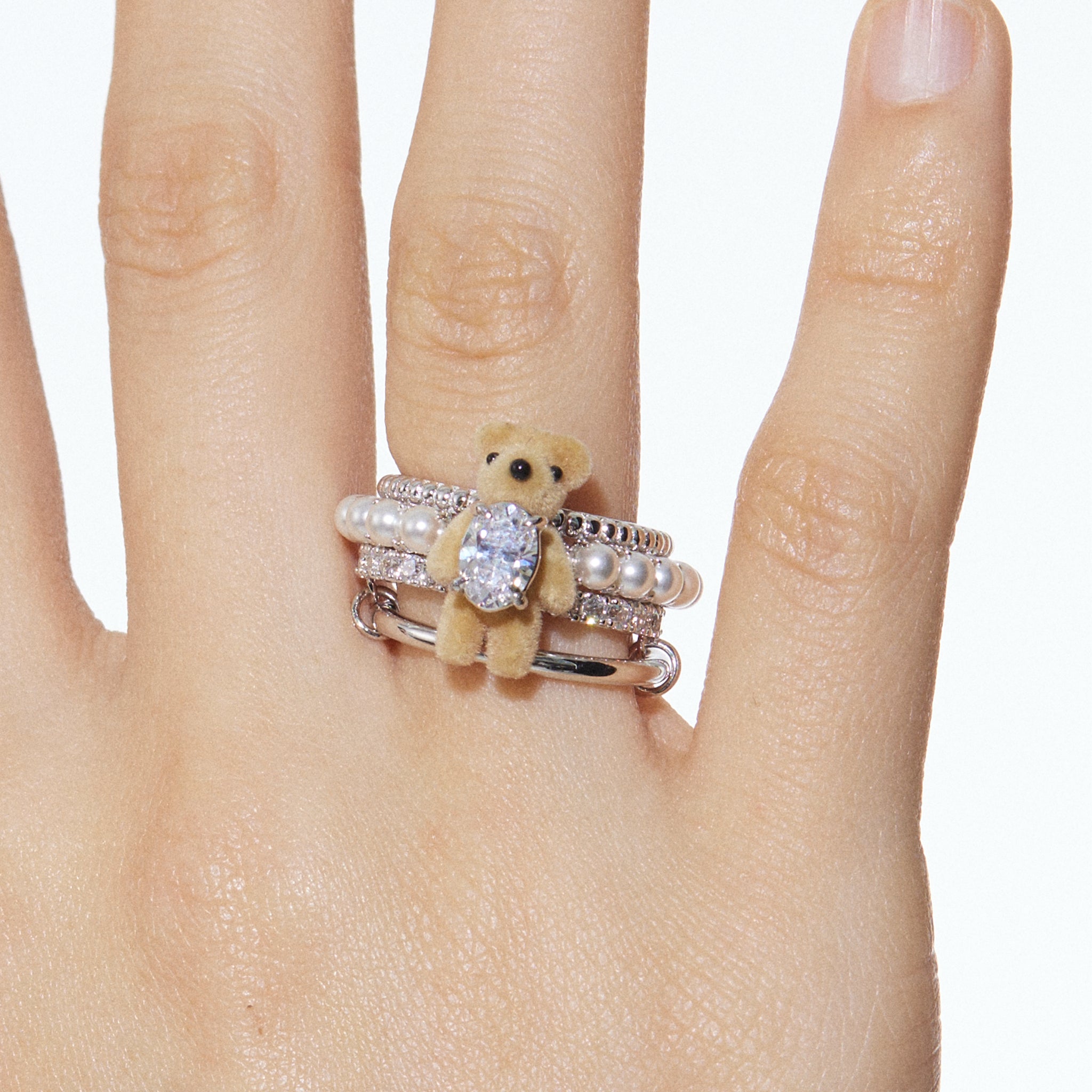 Paradise / Mini Flocked Bear Layers Pearl Ring