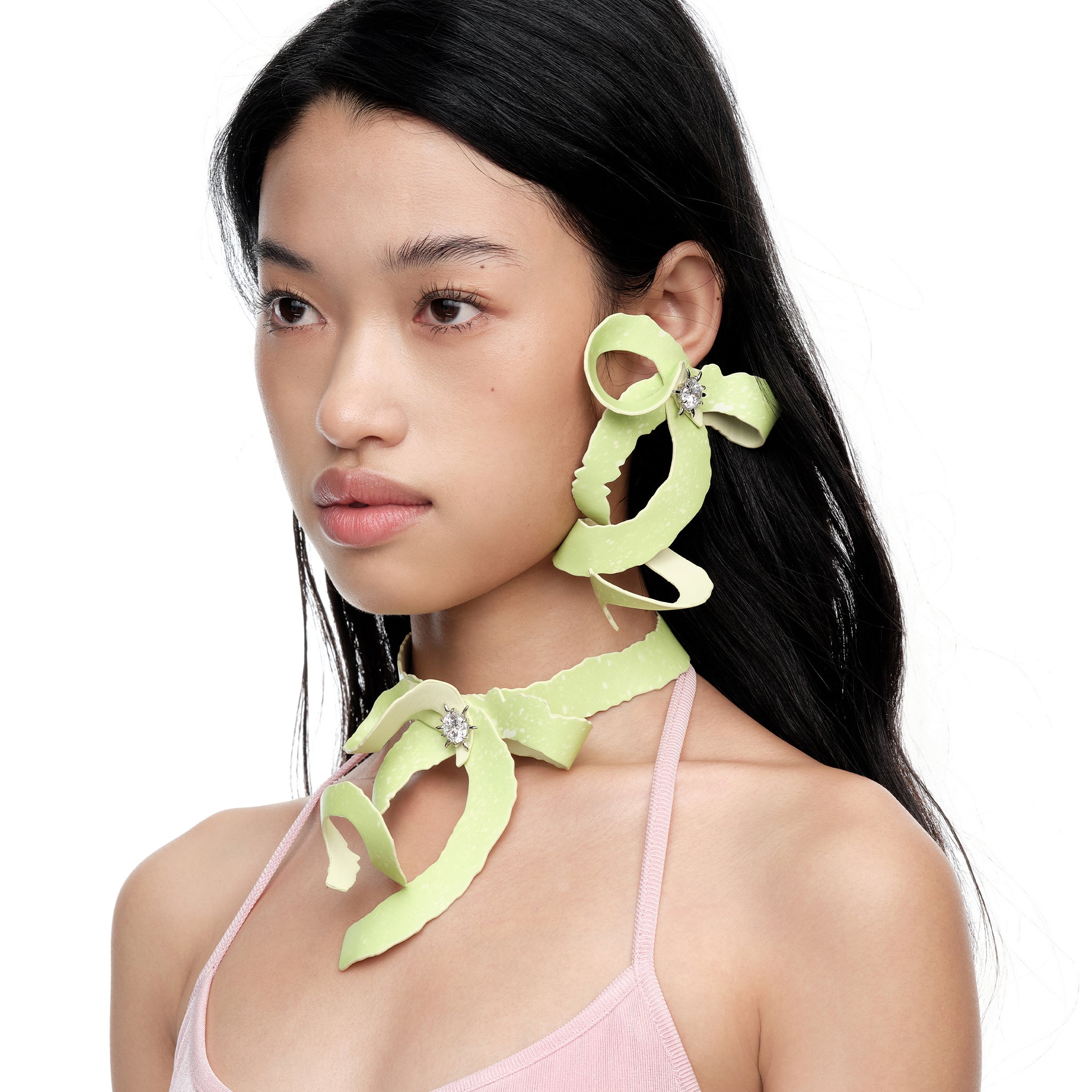 Paradise / Apple Peel Leather Bow Gemstone Earring