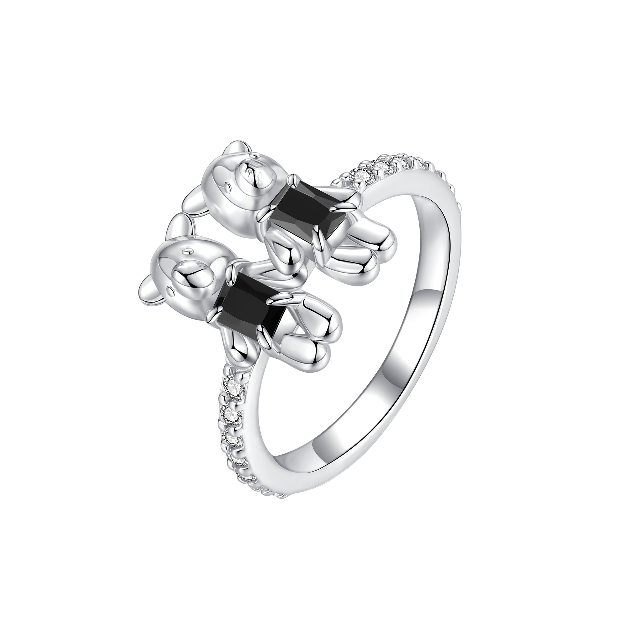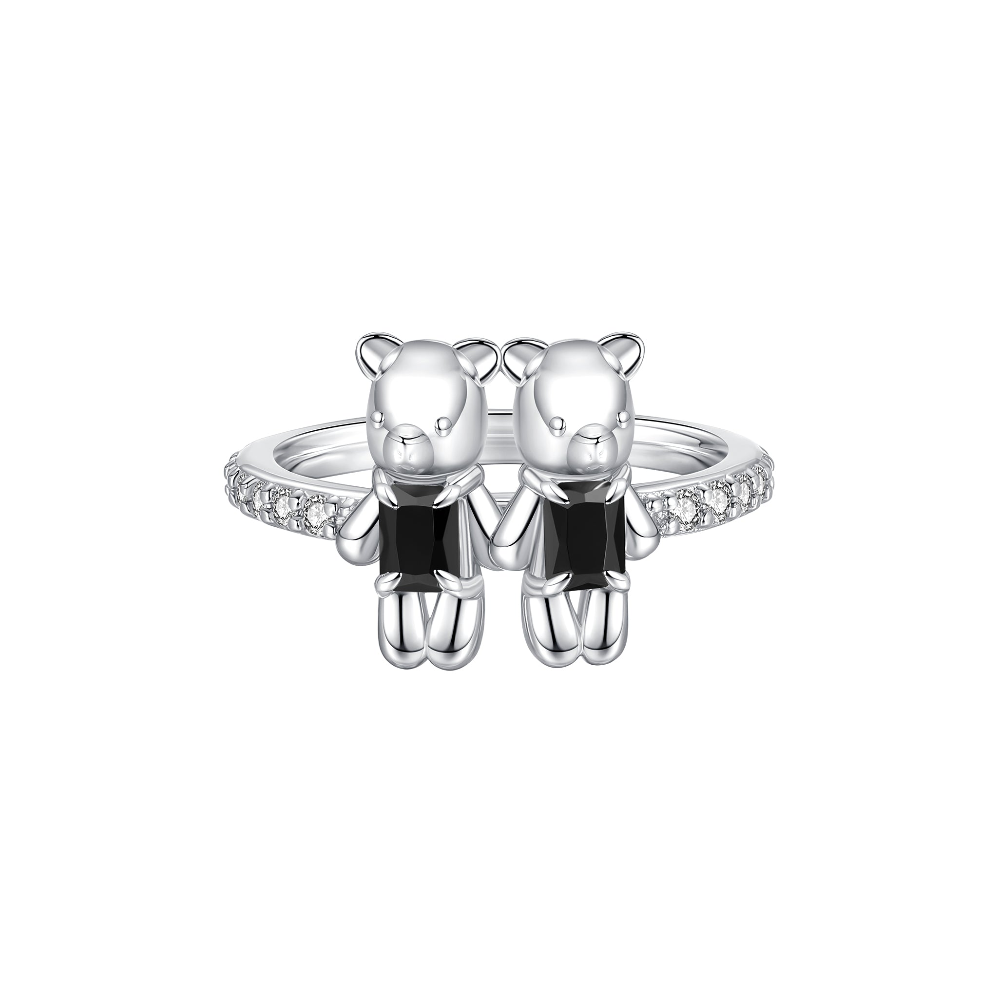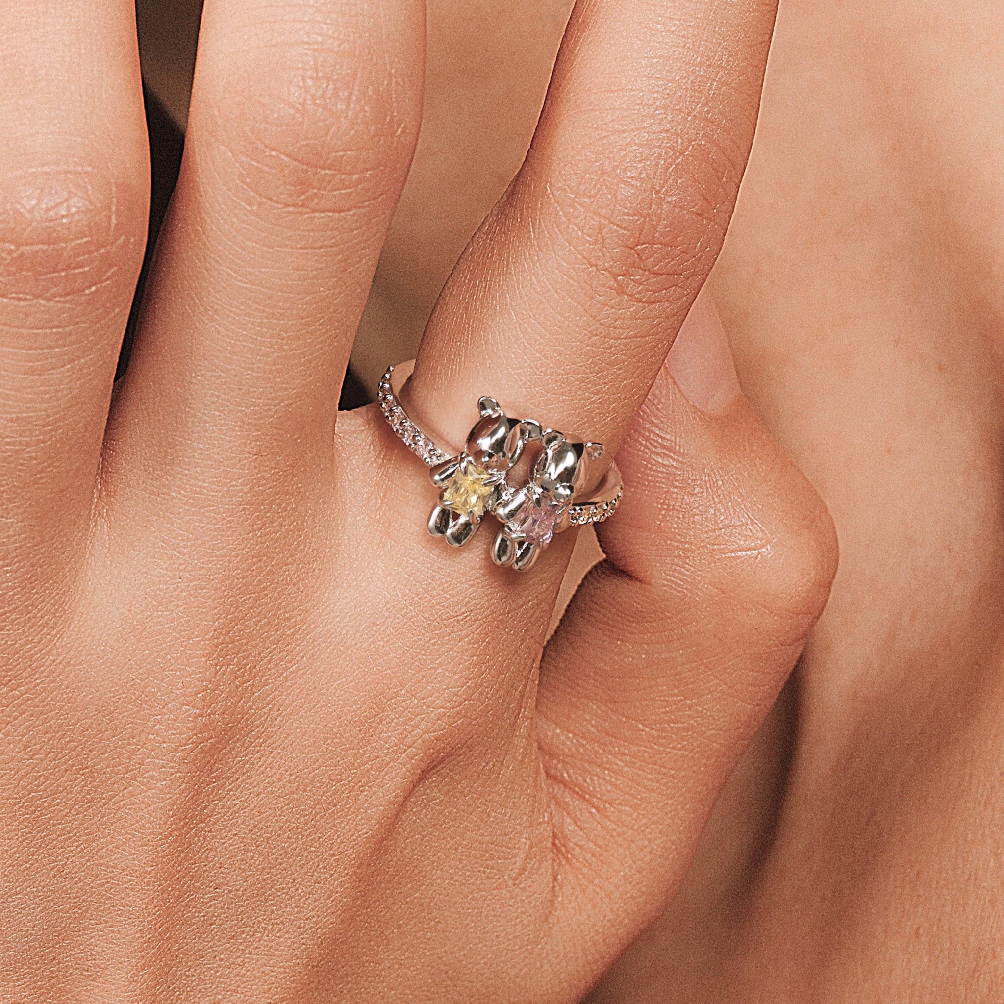 Paradise / Bear Holding Hands Inlaid Stone Ring