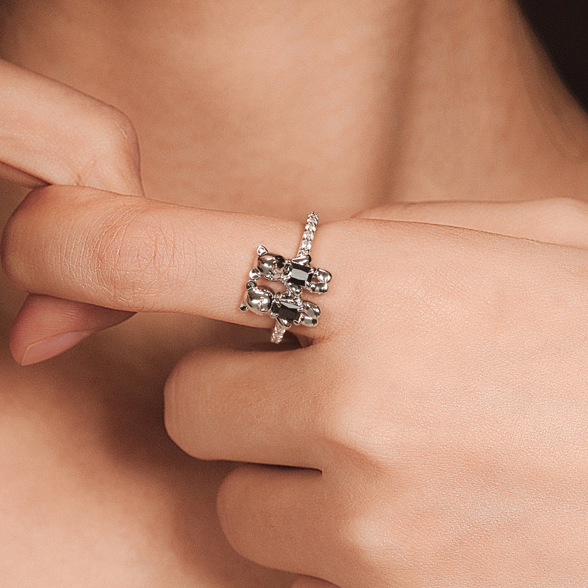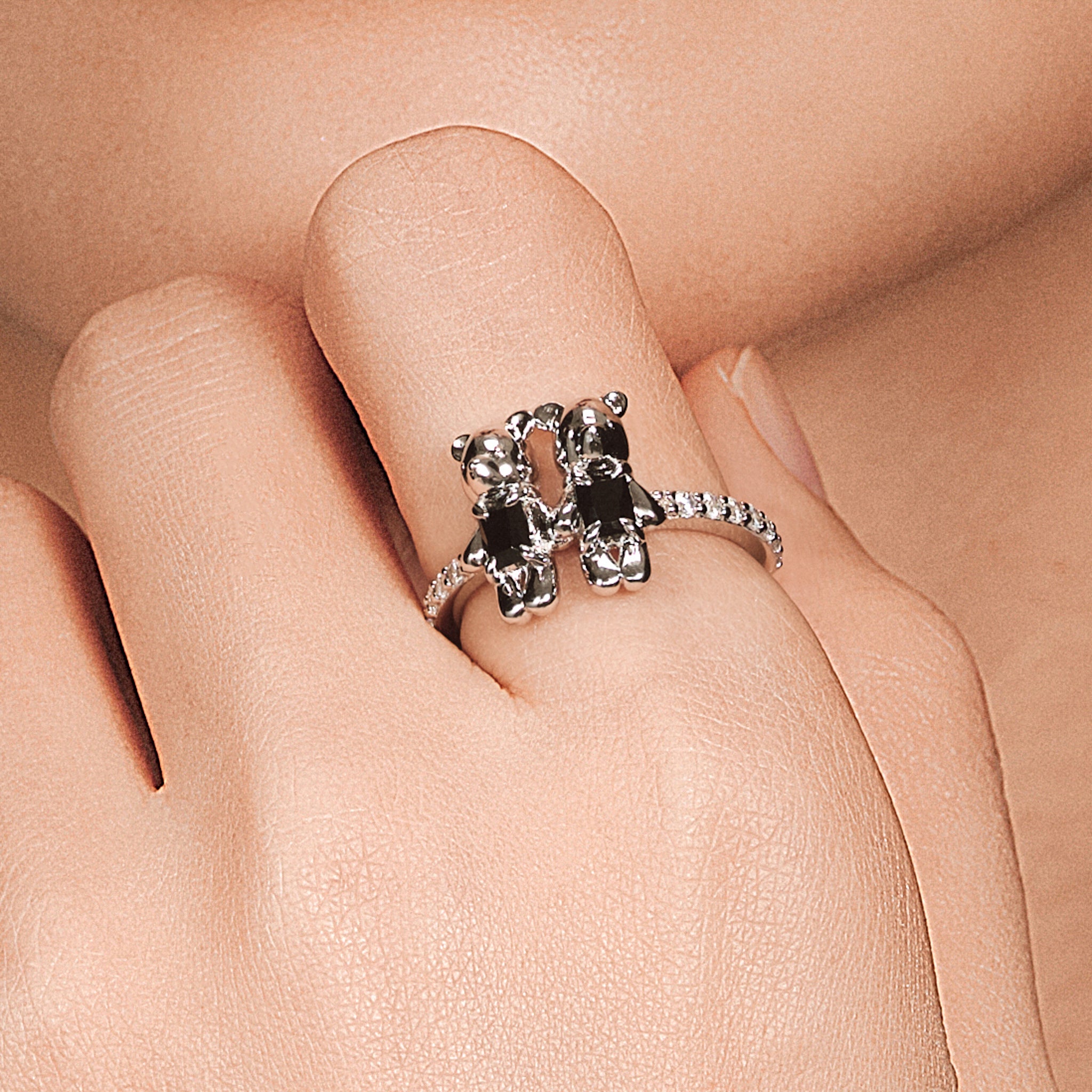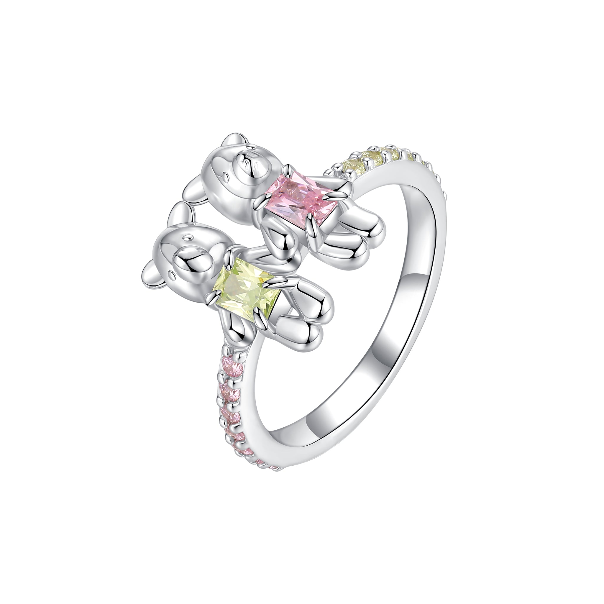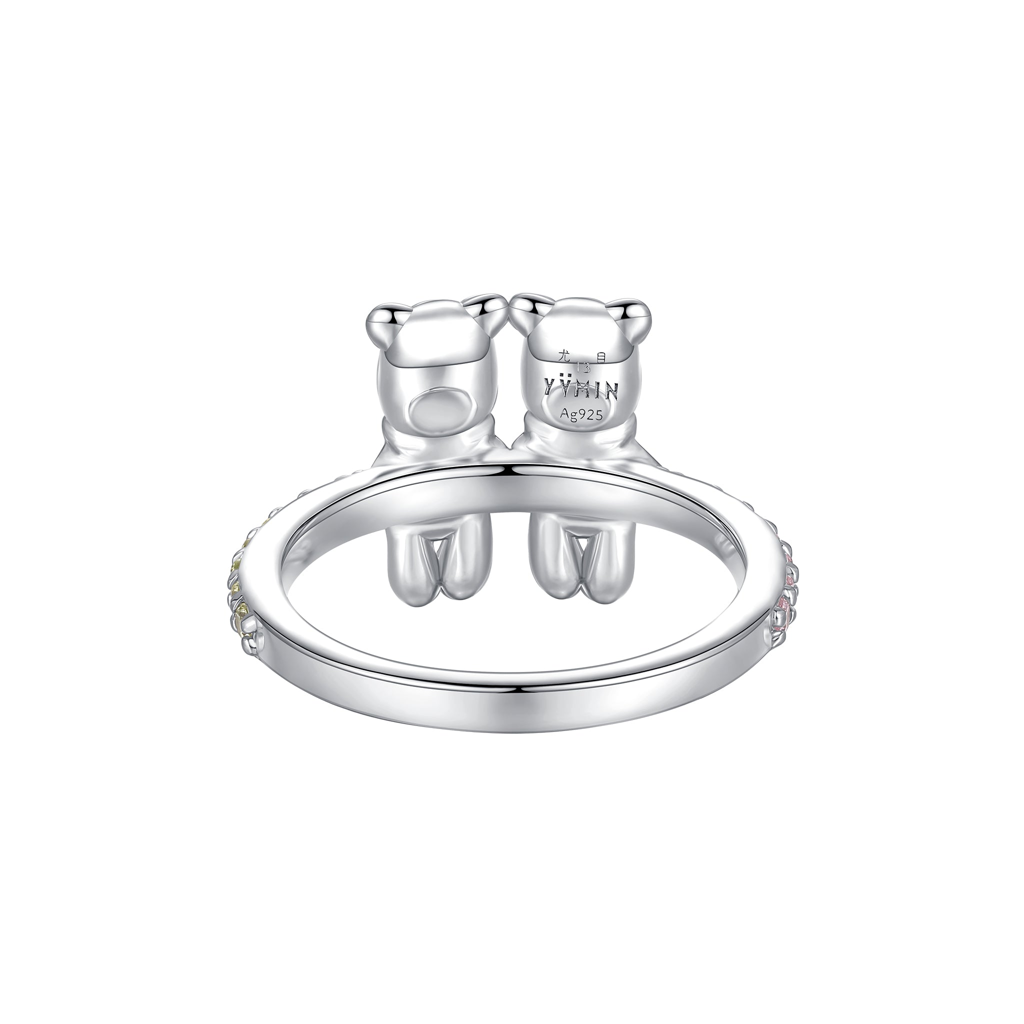 Paradise / Bear Holding Hands Inlaid Stone Ring