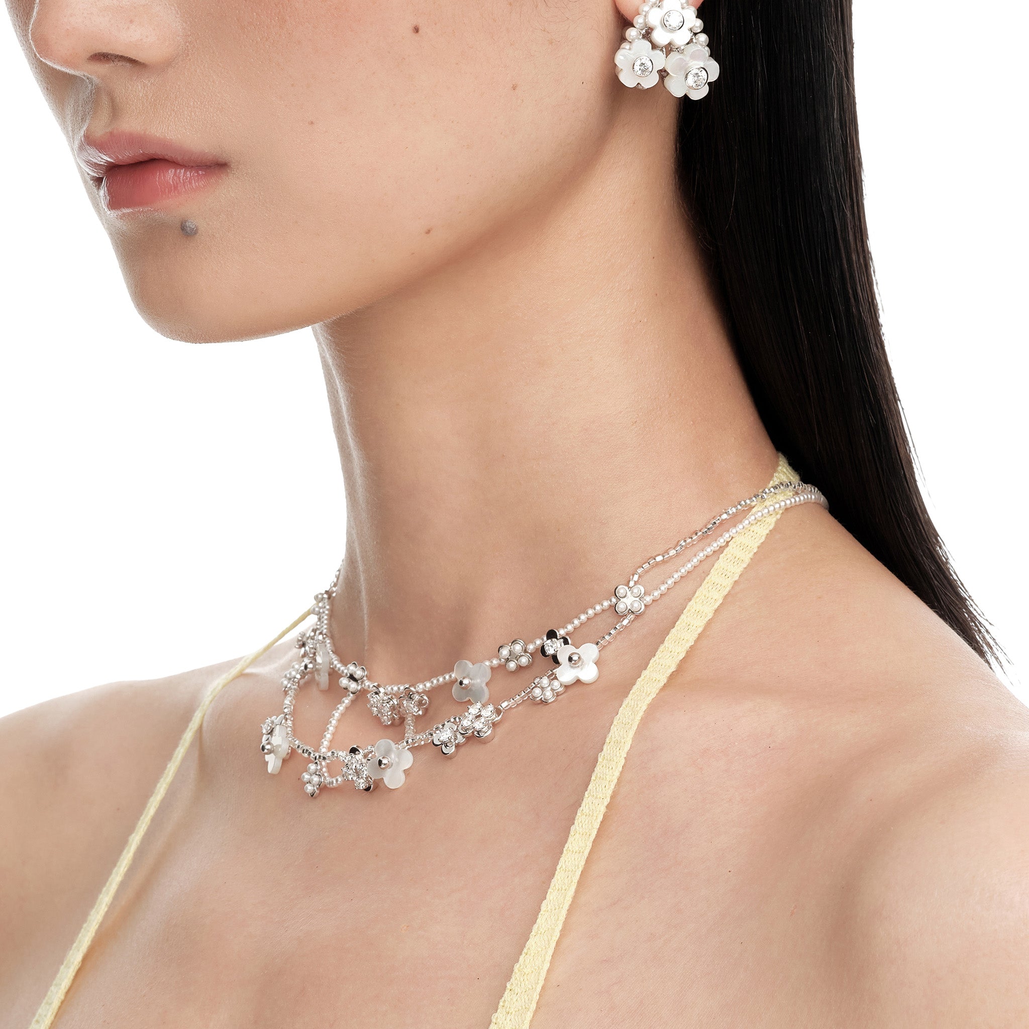 Materials: Brass Plated with 18K gold, Zircon, Nacre, Synthetic Pearl, Synthetic Crystal