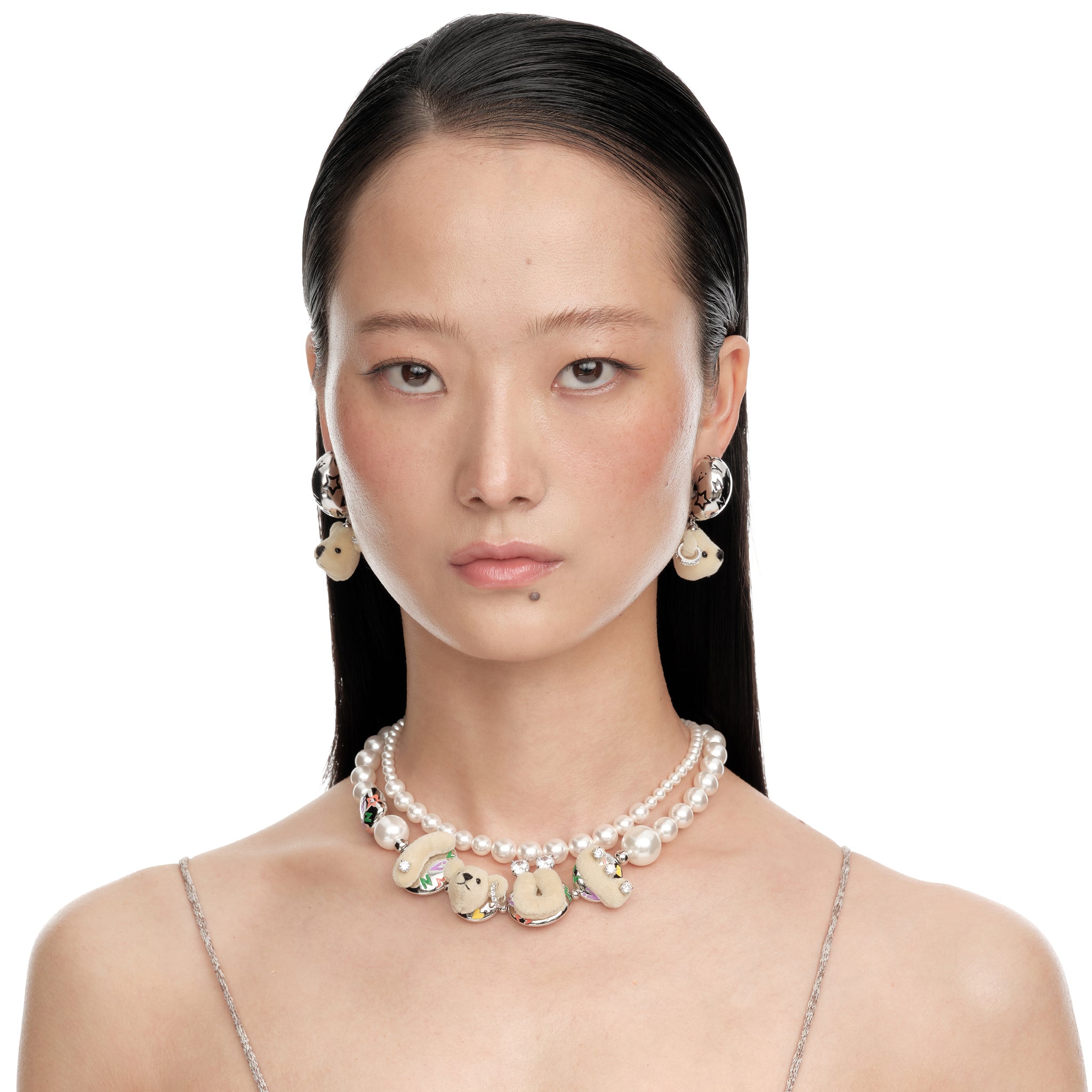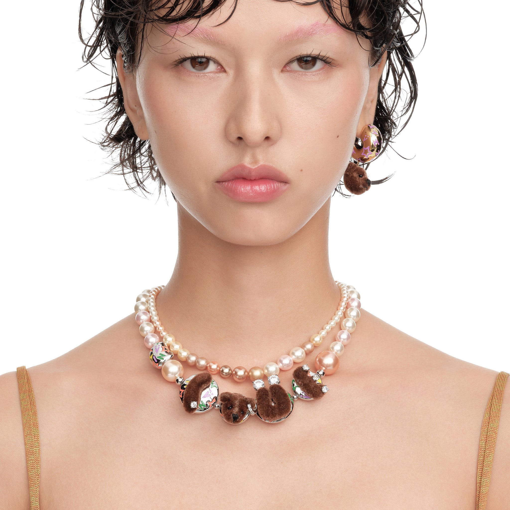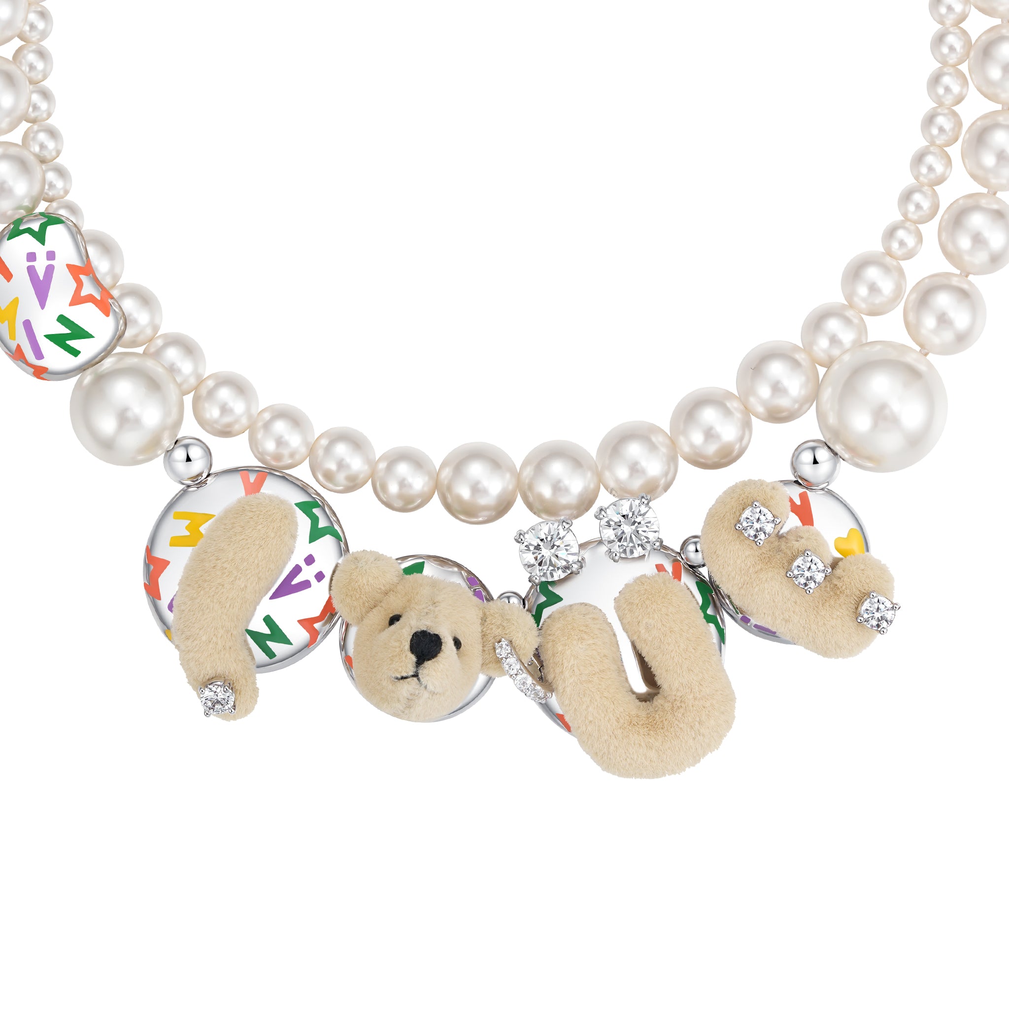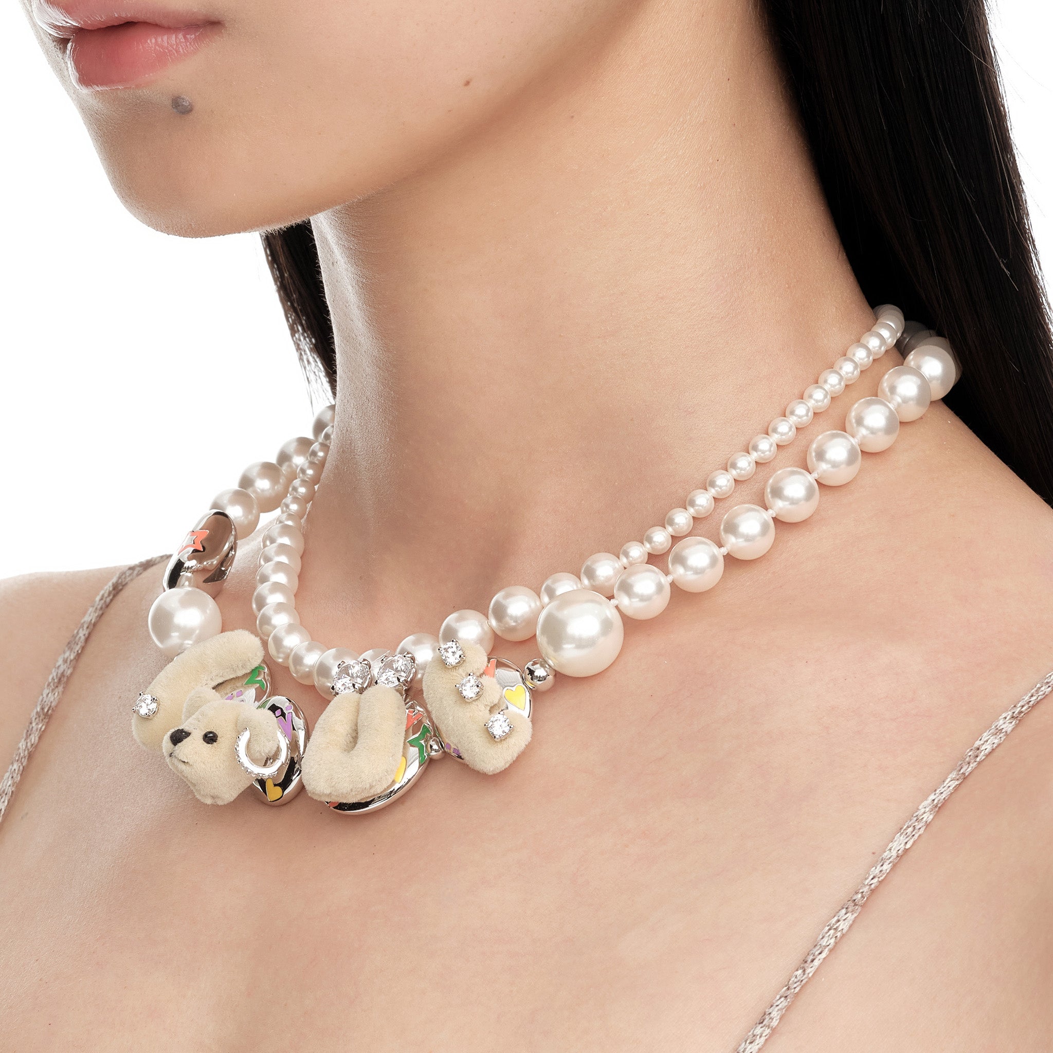 Paradise / LOVE Bear Pearl Double Layer Necklace