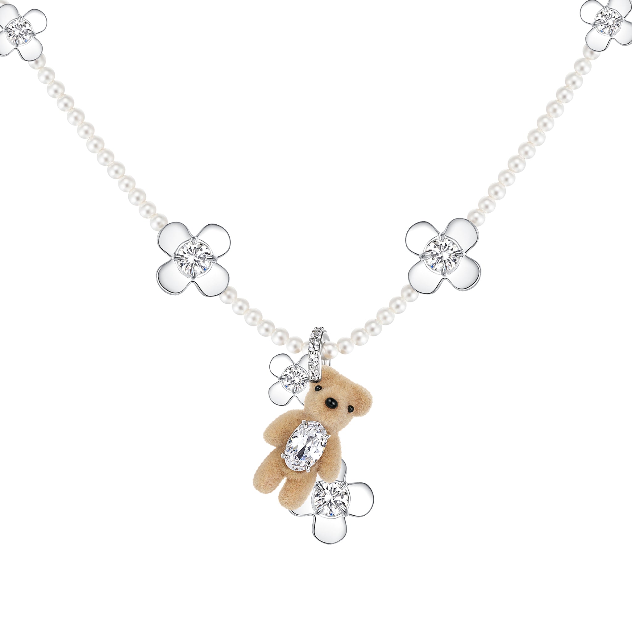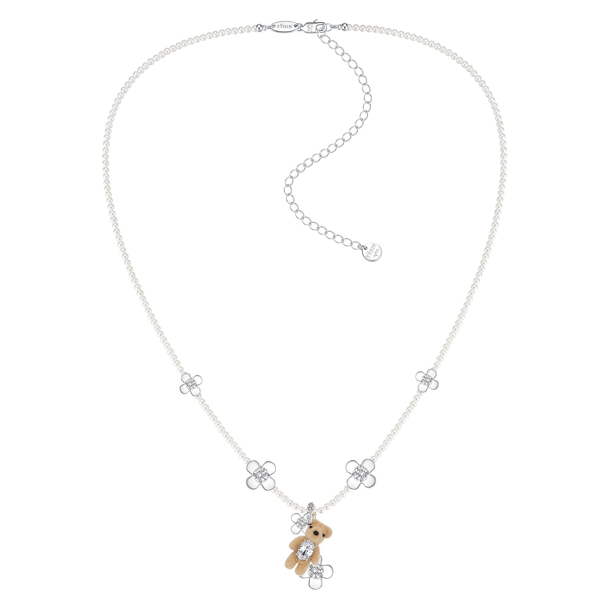 Paradise / Mini Flocked Bear Flowers Pearl Necklace