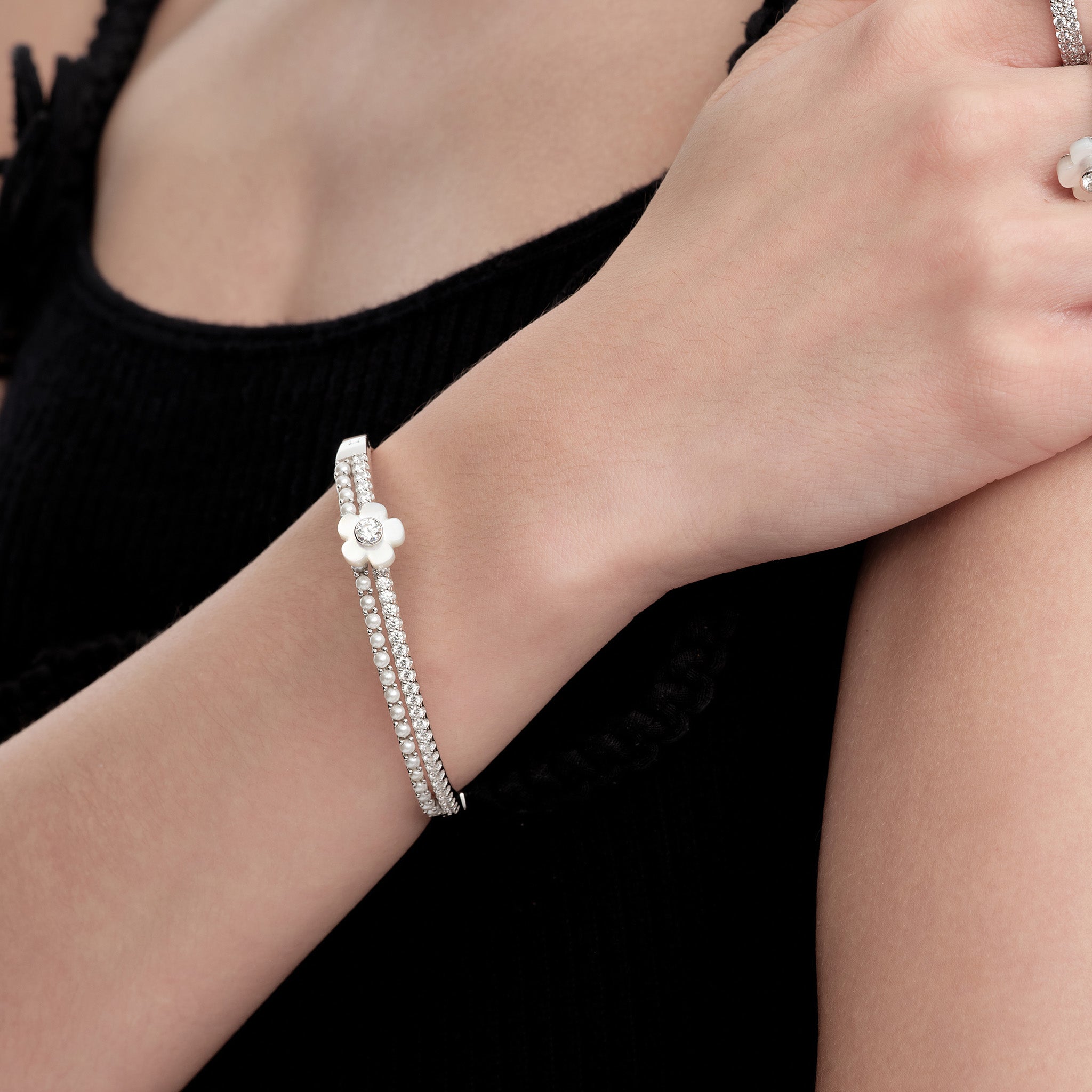 Paradise / Nacre Flower Double Layer Bracelet