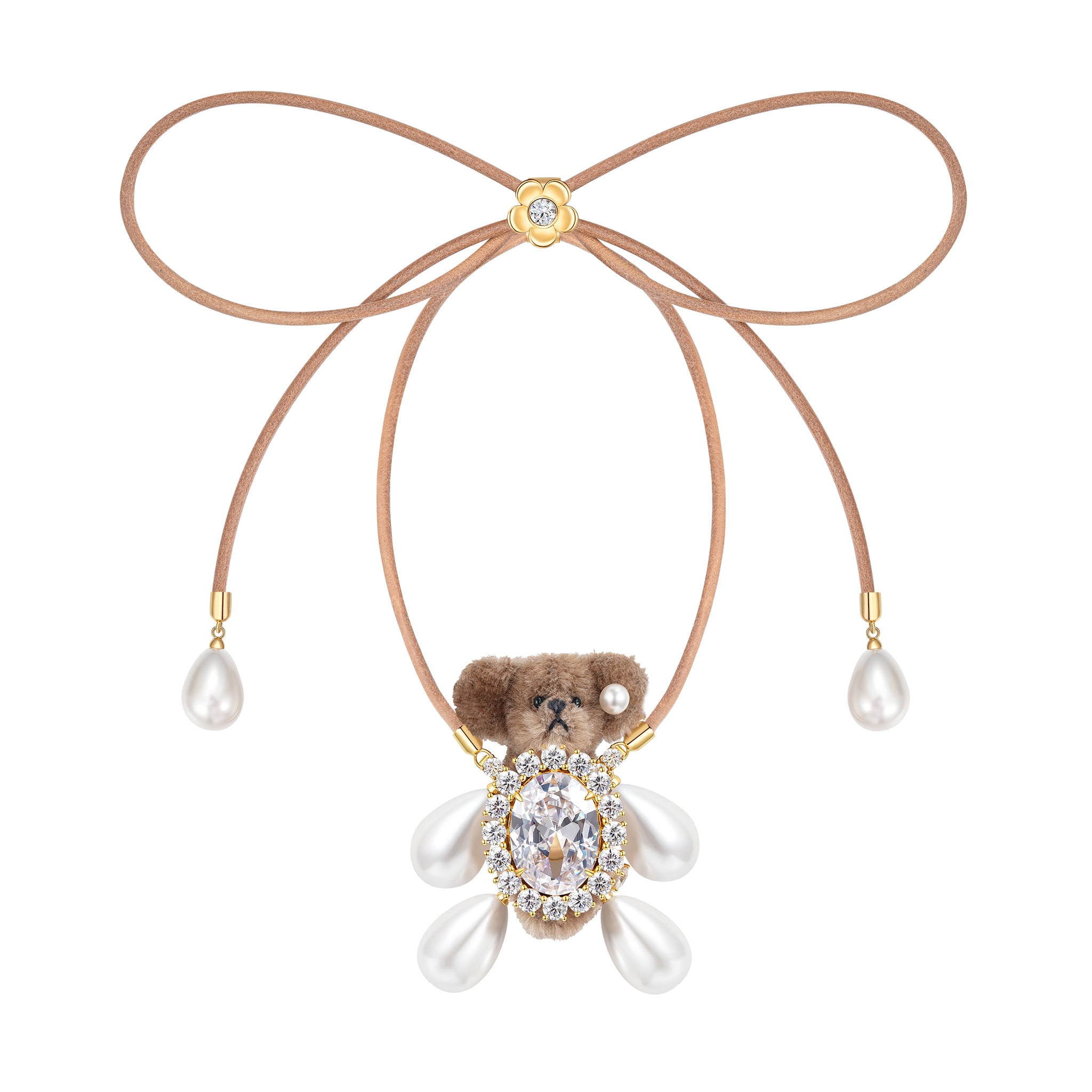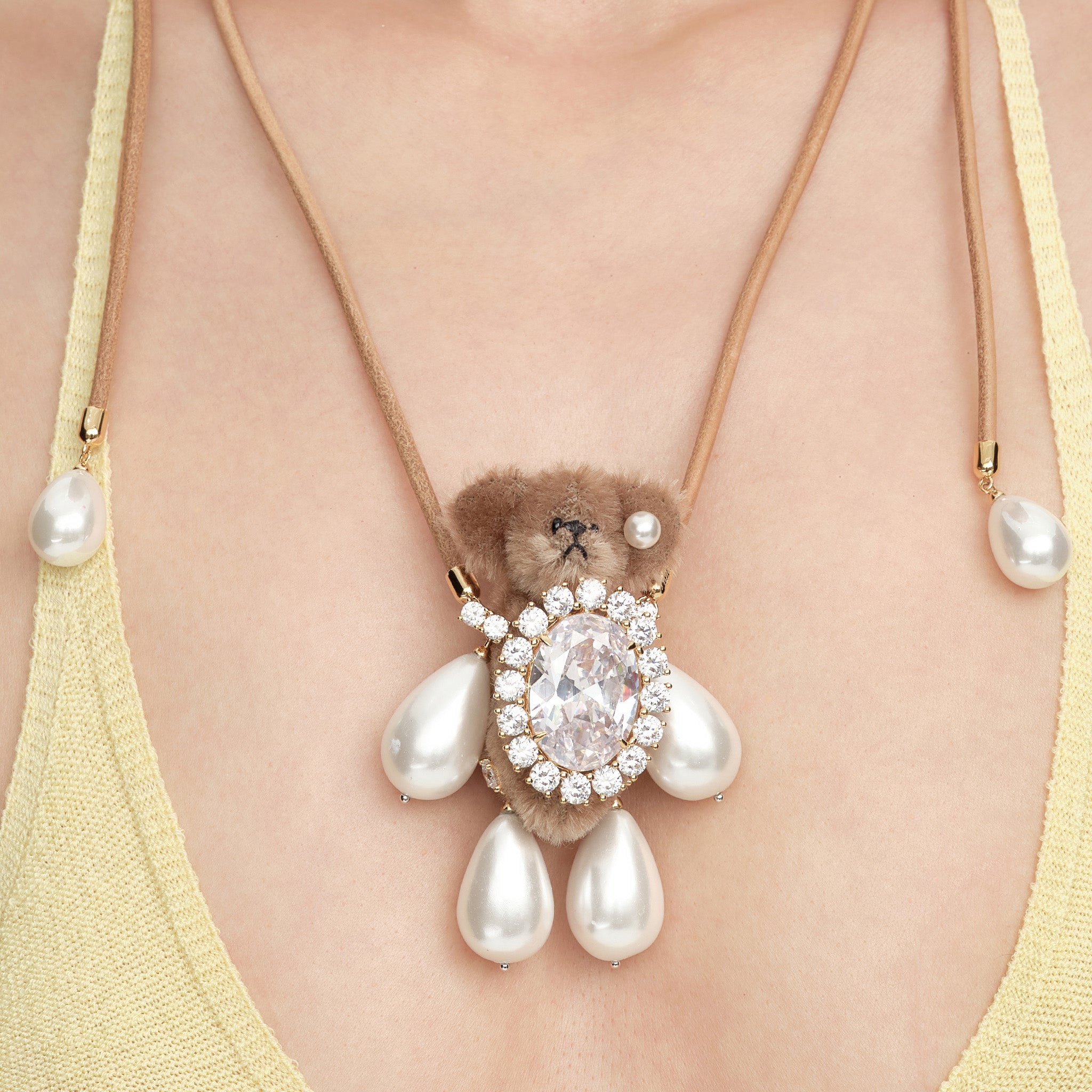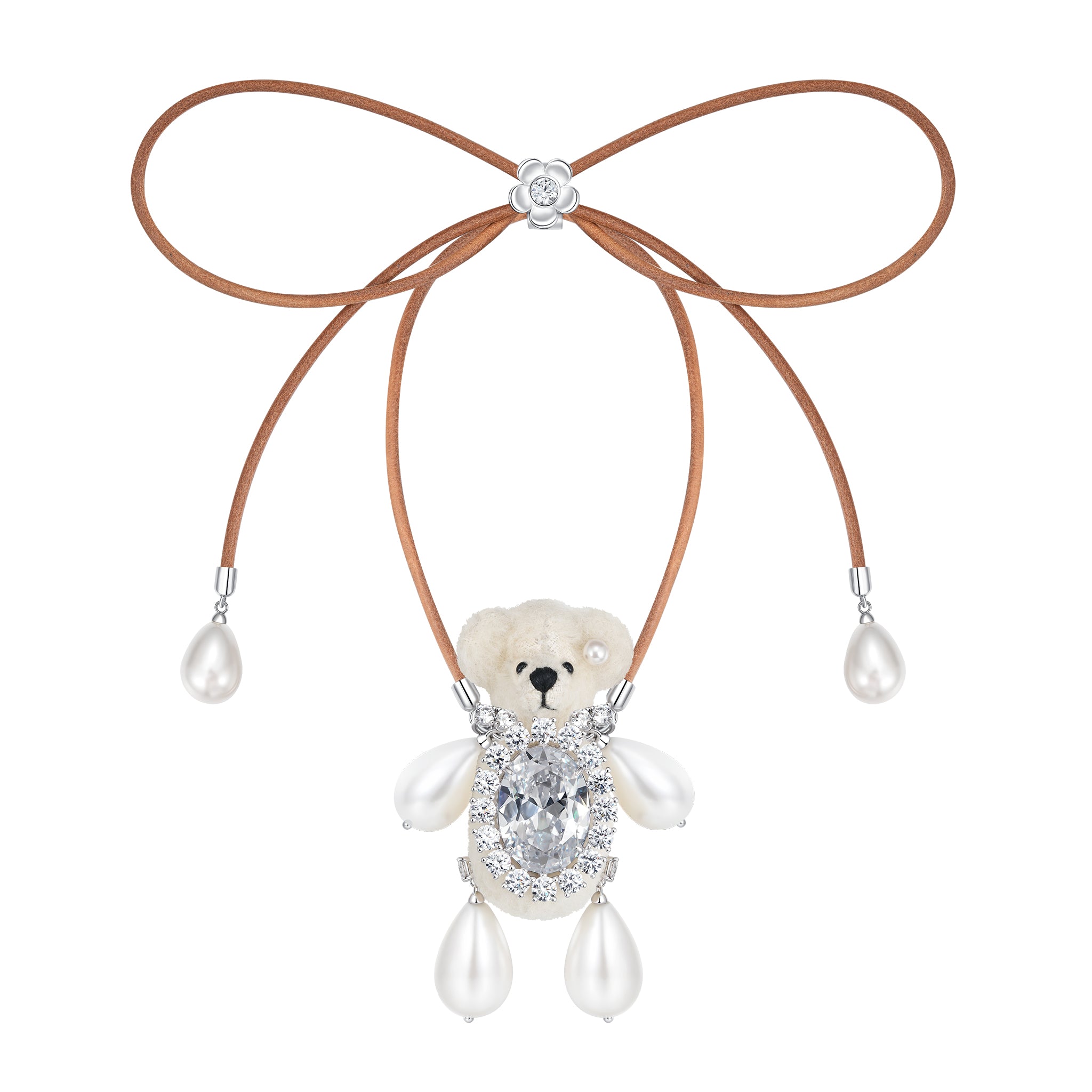 Paradise / Pearl Limbs Bear Leather Chain Necklace