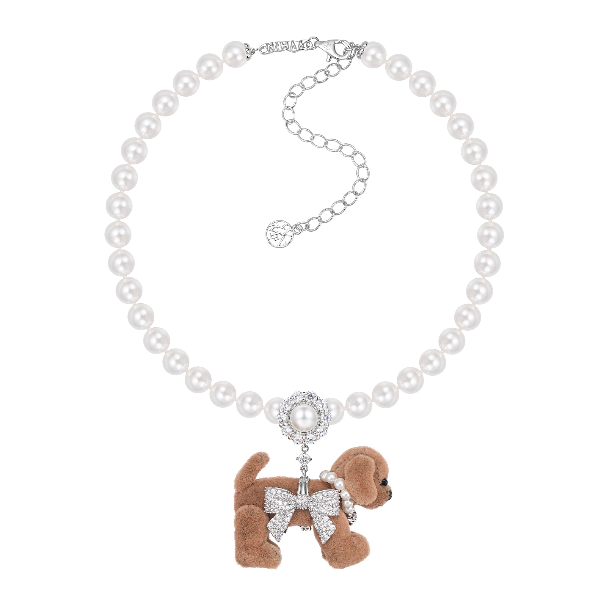 Paradise / Pave Bowknot Puppy Pearl Necklace