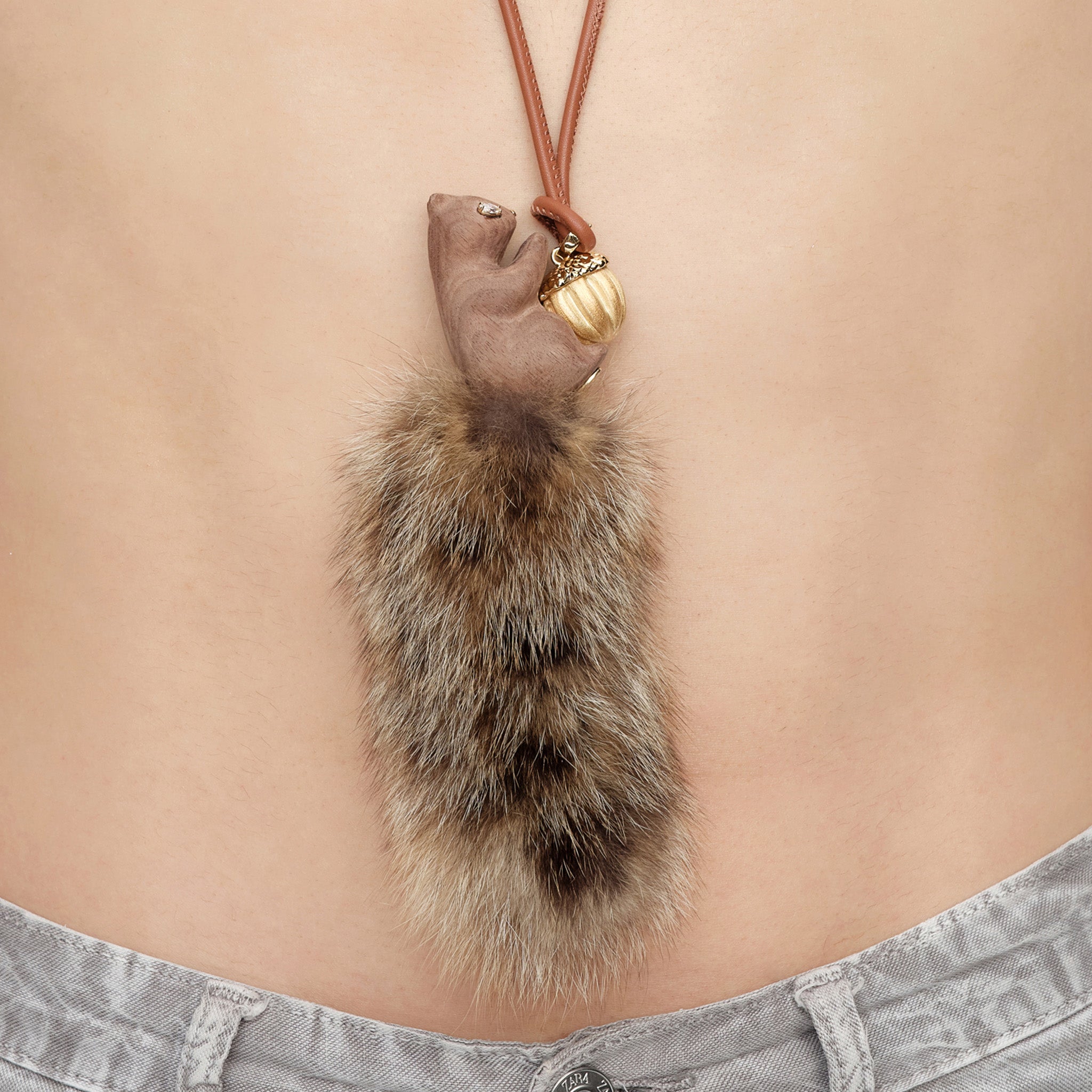 Paradise / Wooden Squirrel Plush Tail Pearl Necklace