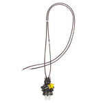 Materials: Brass, plated with 18K gold, Zircon, Synthetic Pearl, Wood, Leather, Synthetic Crystal