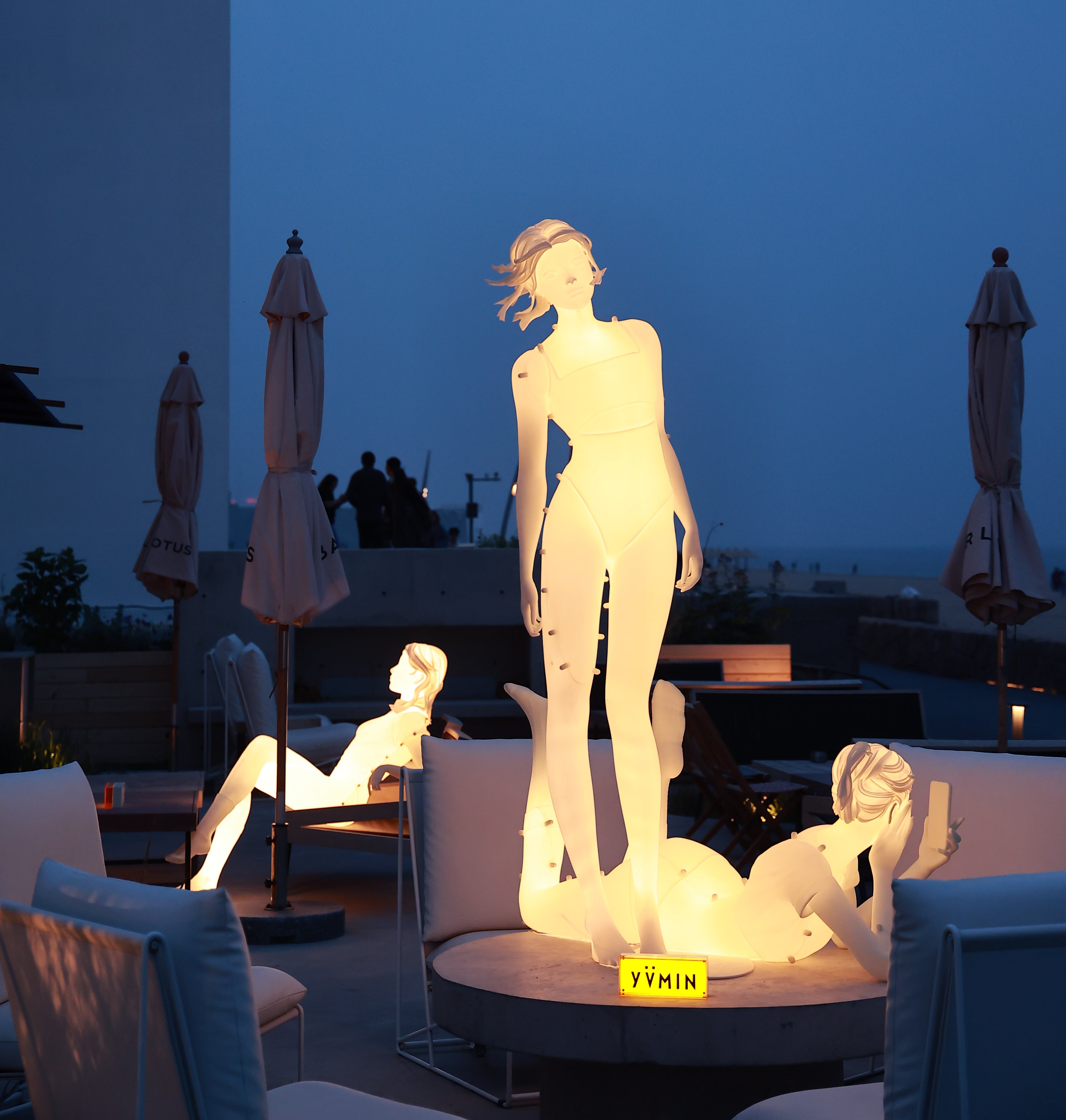 2023年,我们开始创作一系列以女孩形象为主题的雕塑作品。其中包括海边摆放的一系列女孩造型灯饰,以及模仿大理石雕塑造型的珠宝展示架。